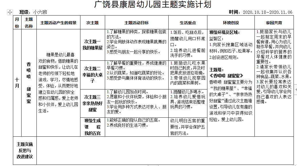十月份主题实施计划