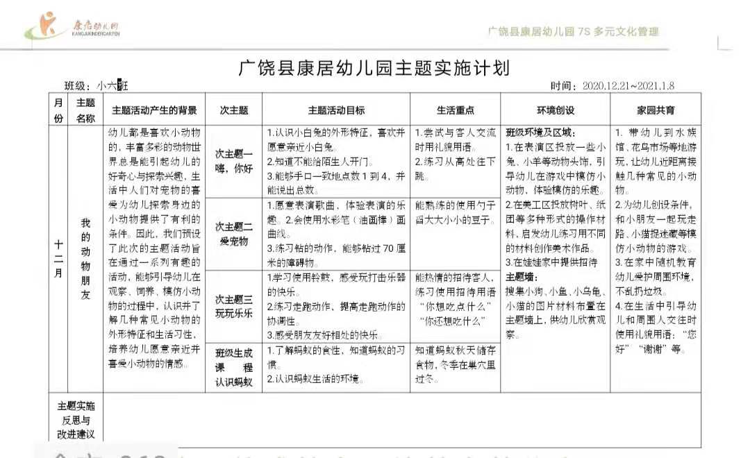 一月份主题实施计划