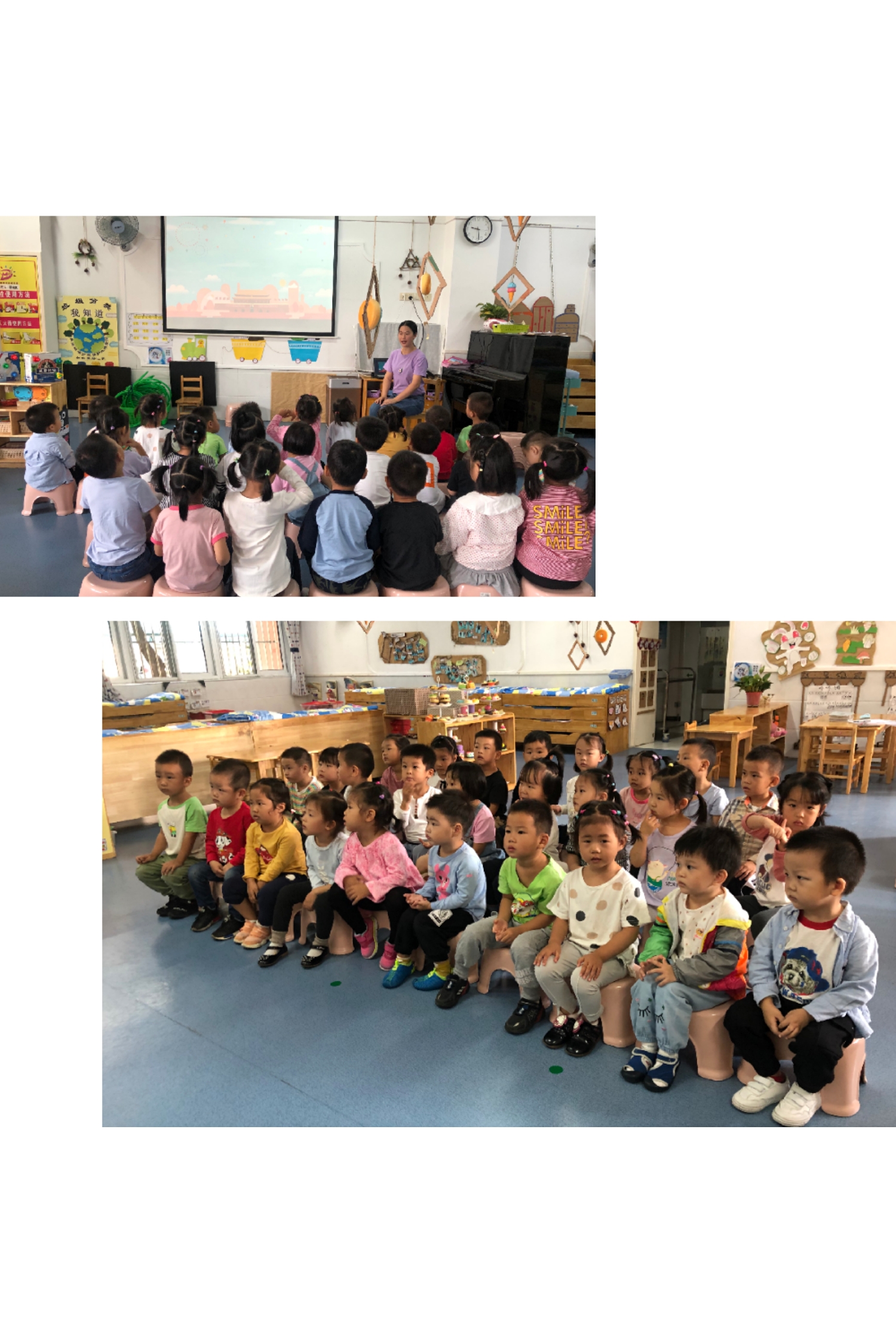 每个人都有自己的生日,当生日来临的时候,家人都会给他庆祝。祖国也有自己的生日,我们通过故事快乐的国庆节,初步了解国庆,知道国庆节是中华人民共和国成立的日子,回顾国庆节,与同伴分享国庆节的喜欢之情,培养幼儿热爱祖国、身为中国人的自豪。看孩子们多认真的学习了解国庆节。