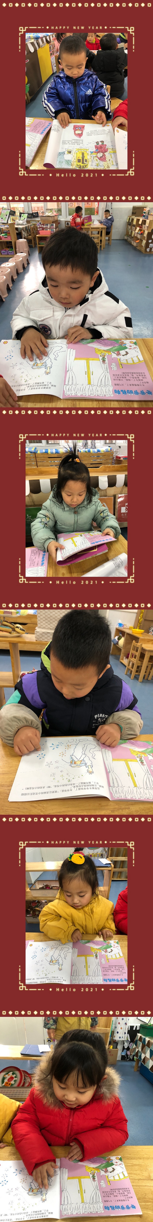 活动开始,孩子们通过看图片,欣赏故事《冬爷爷的礼物》,知道有个宝宝叫丽丽,因为生了一场病,不能去幼儿园了,在家很寂寞,冬爷爷知道了,决定将小雪花送给丽丽作为礼物,让他的病快点好起来。孩子们知道了冬爷爷是一个有爱心、慈祥的老爷爷。看!孩子们在仔细的阅读图书哦!