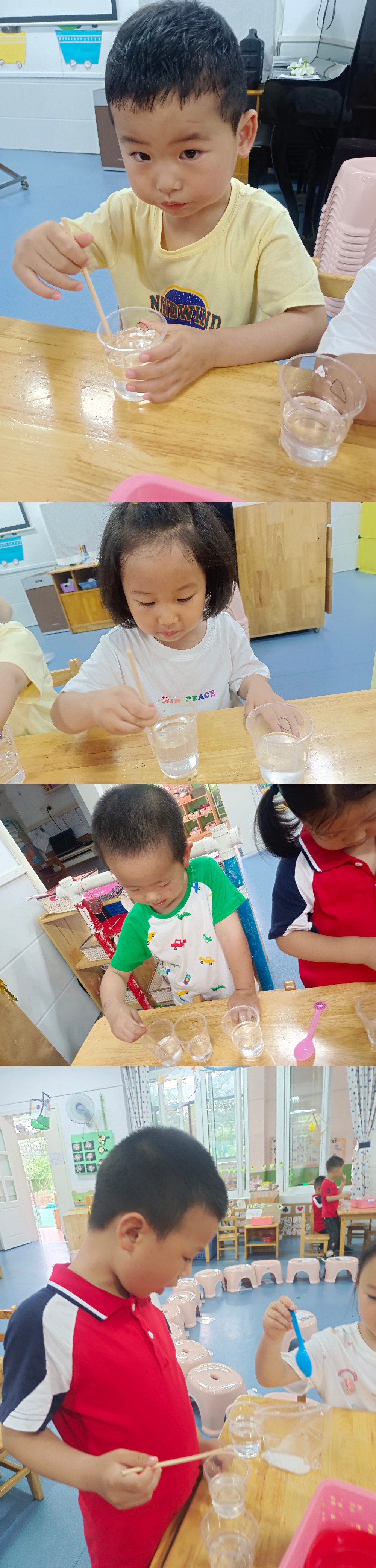生活中有很多琐碎的事情,其中往往蕴涵着丰富的知识和科学现象。例如:“糖和盐不见了”这一教学活动作为小班的幼儿,也是经常见到的,但幼儿并没有真正的去了解这种现象。通过《有趣的溶解》一课,给幼儿提供时间操作机会,既能满足幼儿动手操作探索的欲望,又能在活动中让孩子们充分的去发现问题,积累经验。