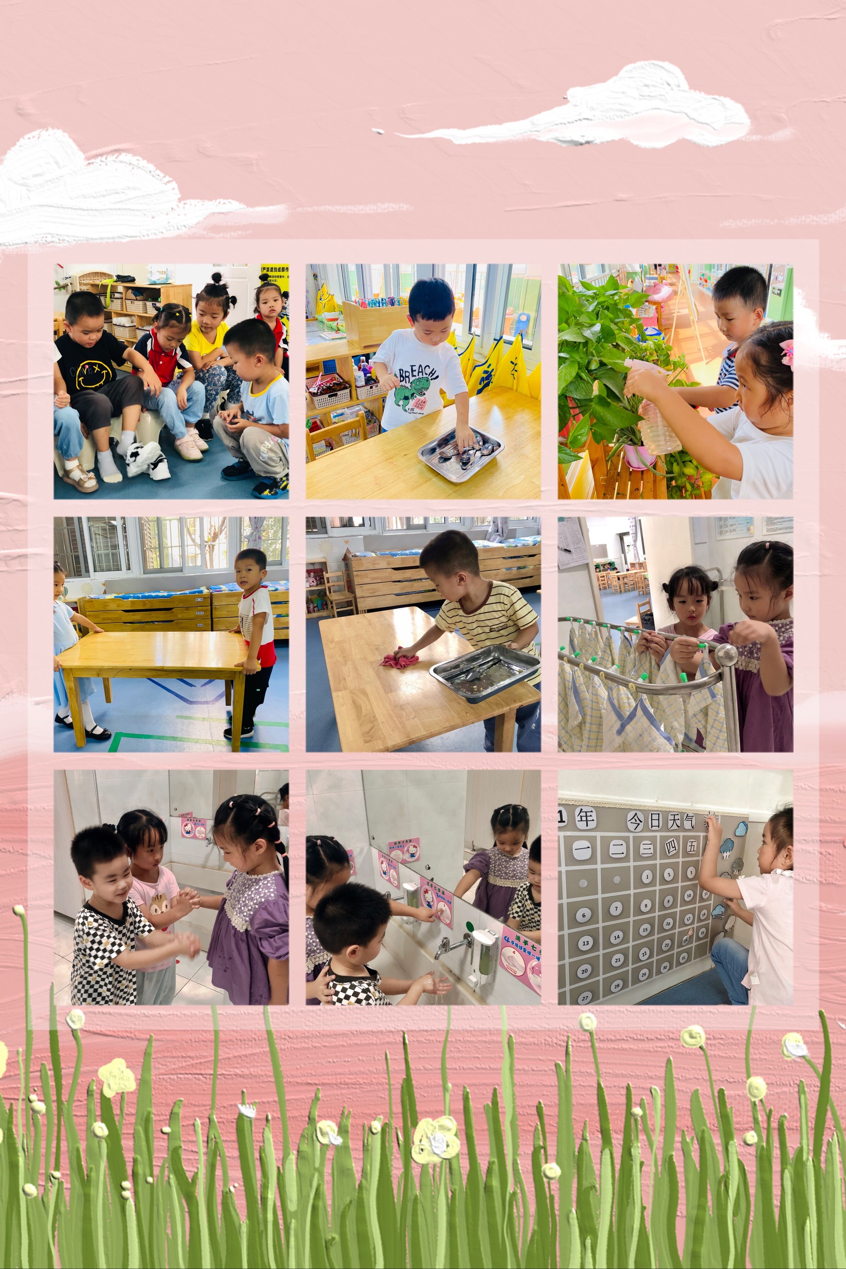 教育家陈鹤琴曾说过:”凡是孩子自己能做的事,让他自己去做。”幼儿园值日生工作是幼儿园“生活即教育课程”的重要组成部分。孩子们通过值日工作,不仅能有效地养成责任感和为他人、为集体服务的意识及良好的劳动习惯,而且能在劳动中不断的认识自己,在值日工作中体验合作,培养管理能力。