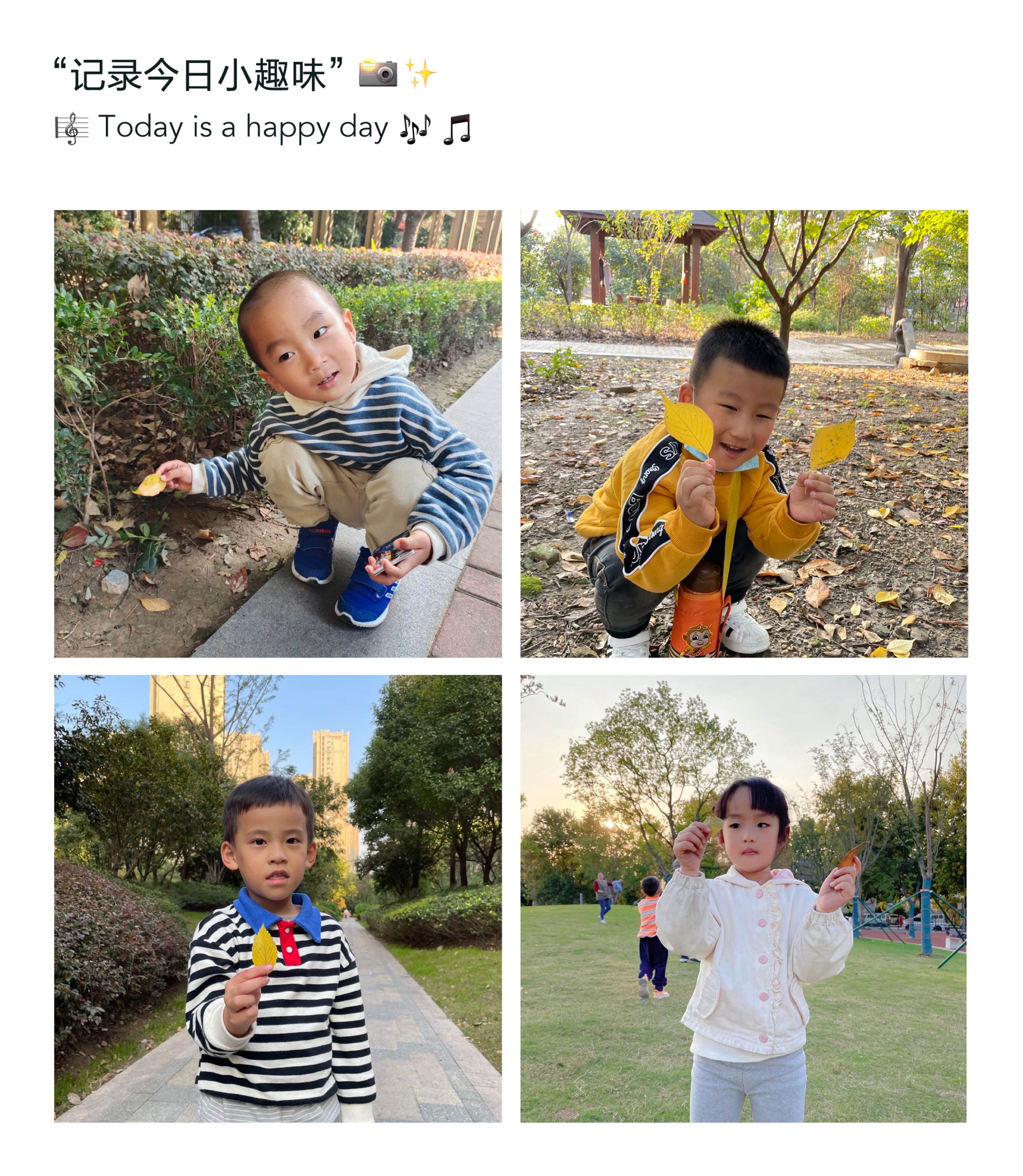 孩子们利用周末一起和爸爸妈妈去公园、小区,收集了各种各样的树叶,有银杏叶、梧桐叶、枫叶.......