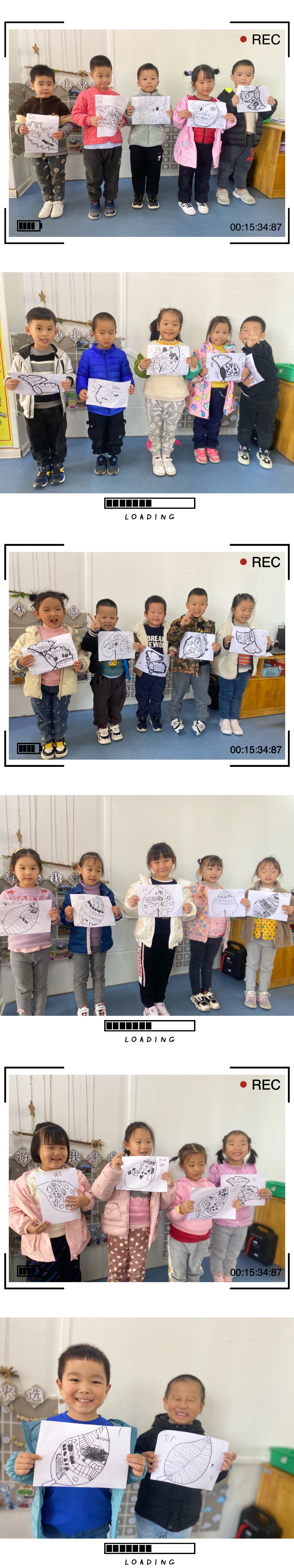 爸爸妈妈快来找一找我树叶装饰画里,都有哪些点、线、面吧! 最后,让我们一起来欣赏孩子们的树叶装饰画吧!