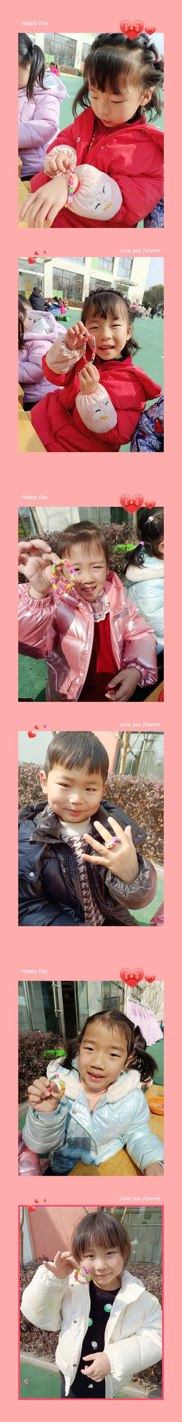 瞧,这是我们在编织坊编的手环,漂亮吧!