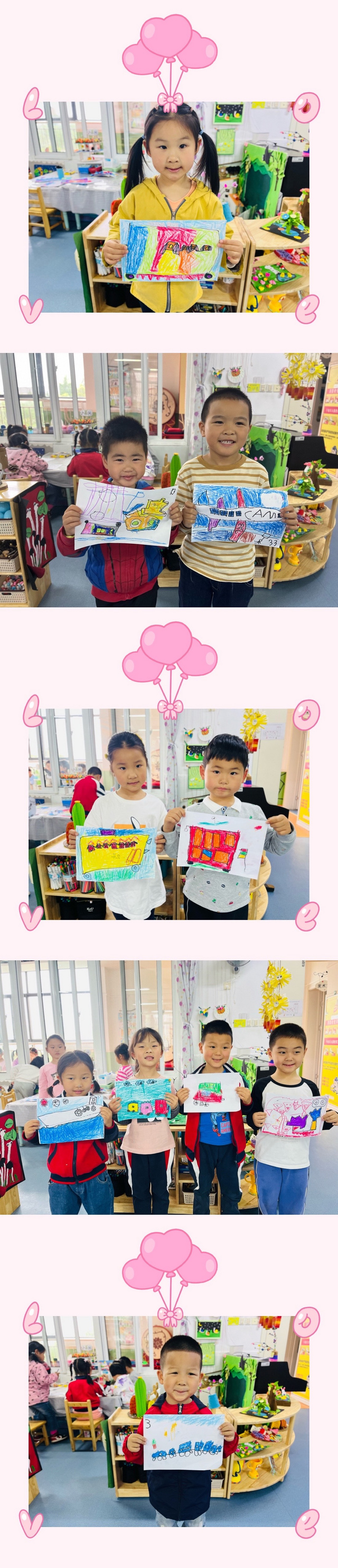 小朋友们用画笔表达出内心想设计的各种交通工具,看我们画的多认真呀!