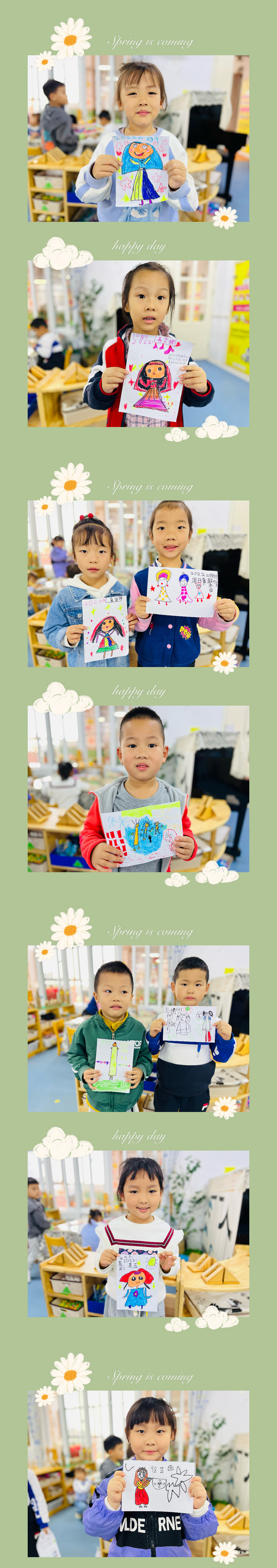 活动结束后,孩子们把自己的作品展示出来并和自己的民族娃娃合影留作纪念。