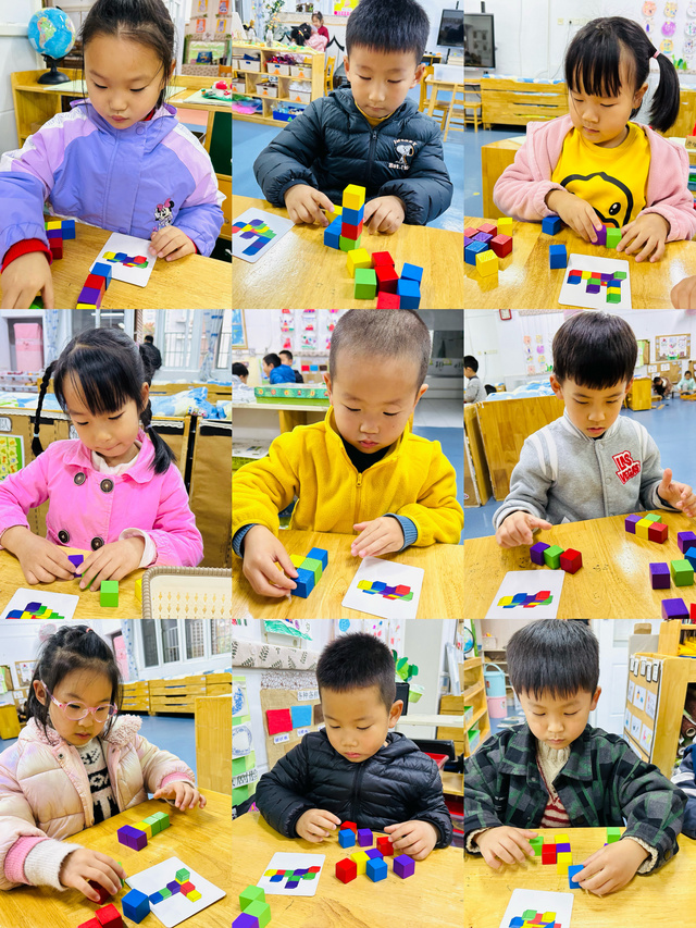 正方体的积木搭出了各种造型,那些隐藏在后面,被完全遮挡住的积木,你发现了它们吗?开动小脑筋,一起数一数吧!