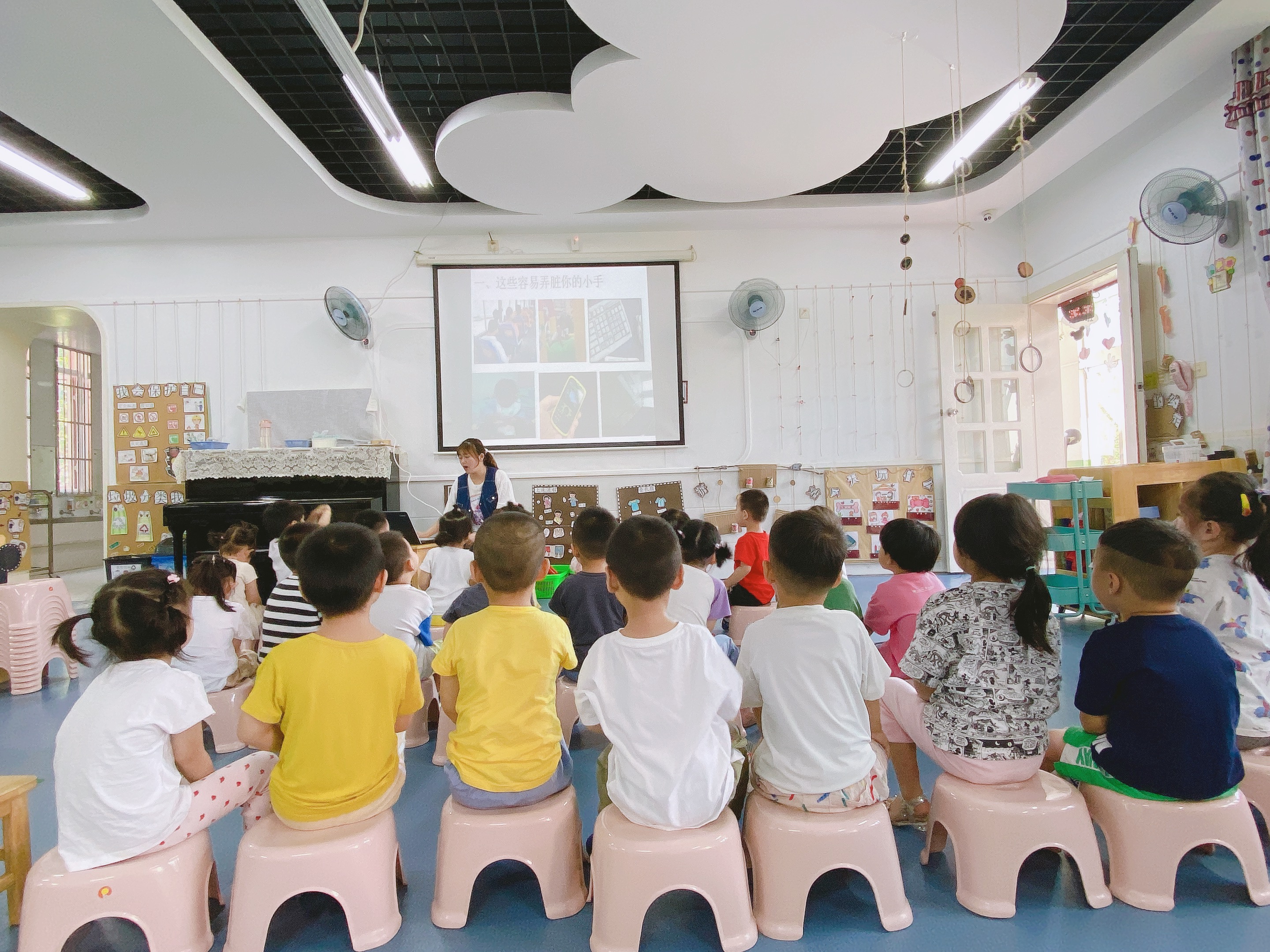 本周孩子们学习了健康活动《小手真干净》,通过本次活动幼儿初步学会用正确的方法洗手、擦手,知道在饭前、便后要洗手。愿意学念儿歌,初步学会边念儿歌边洗手。