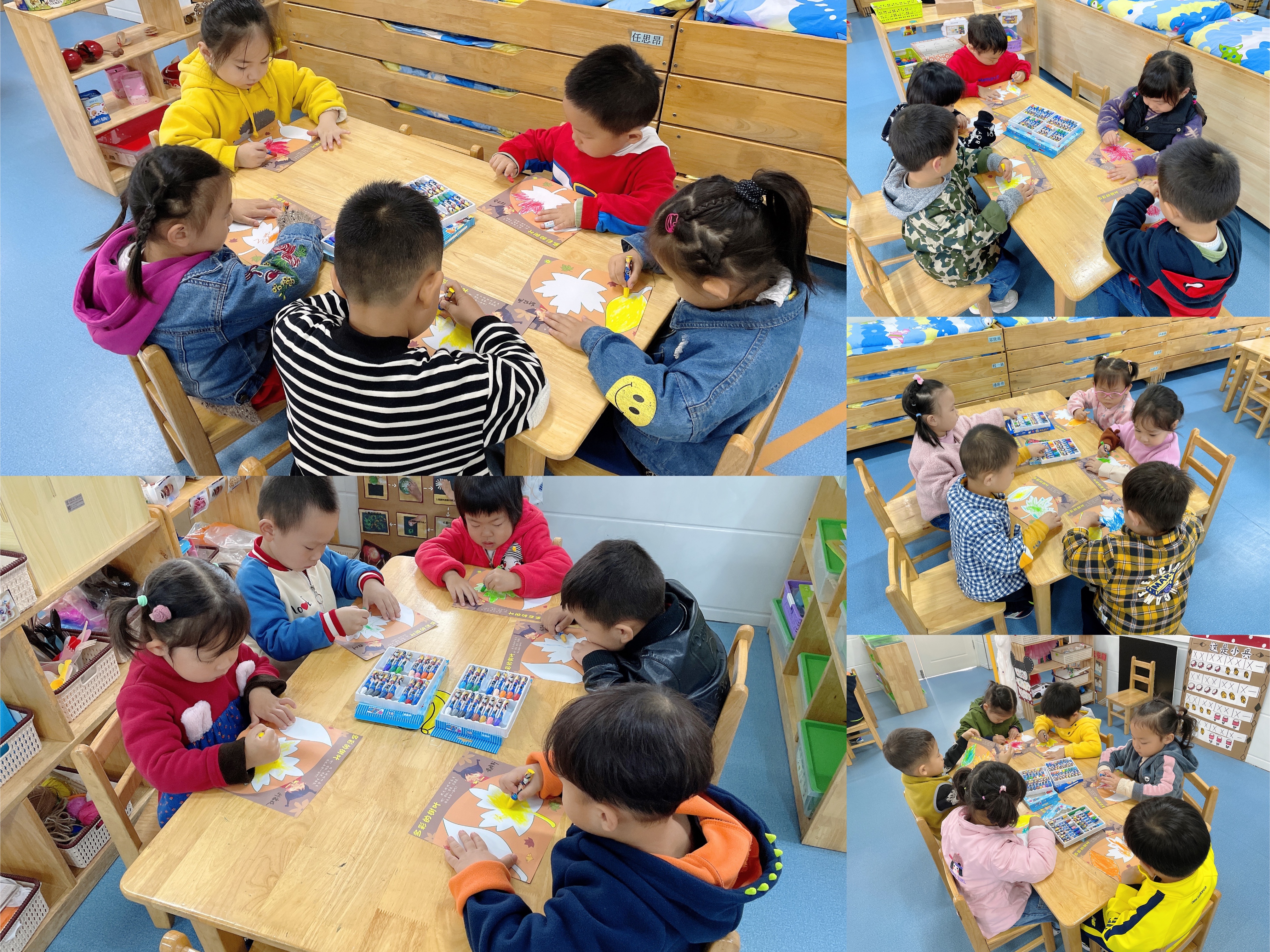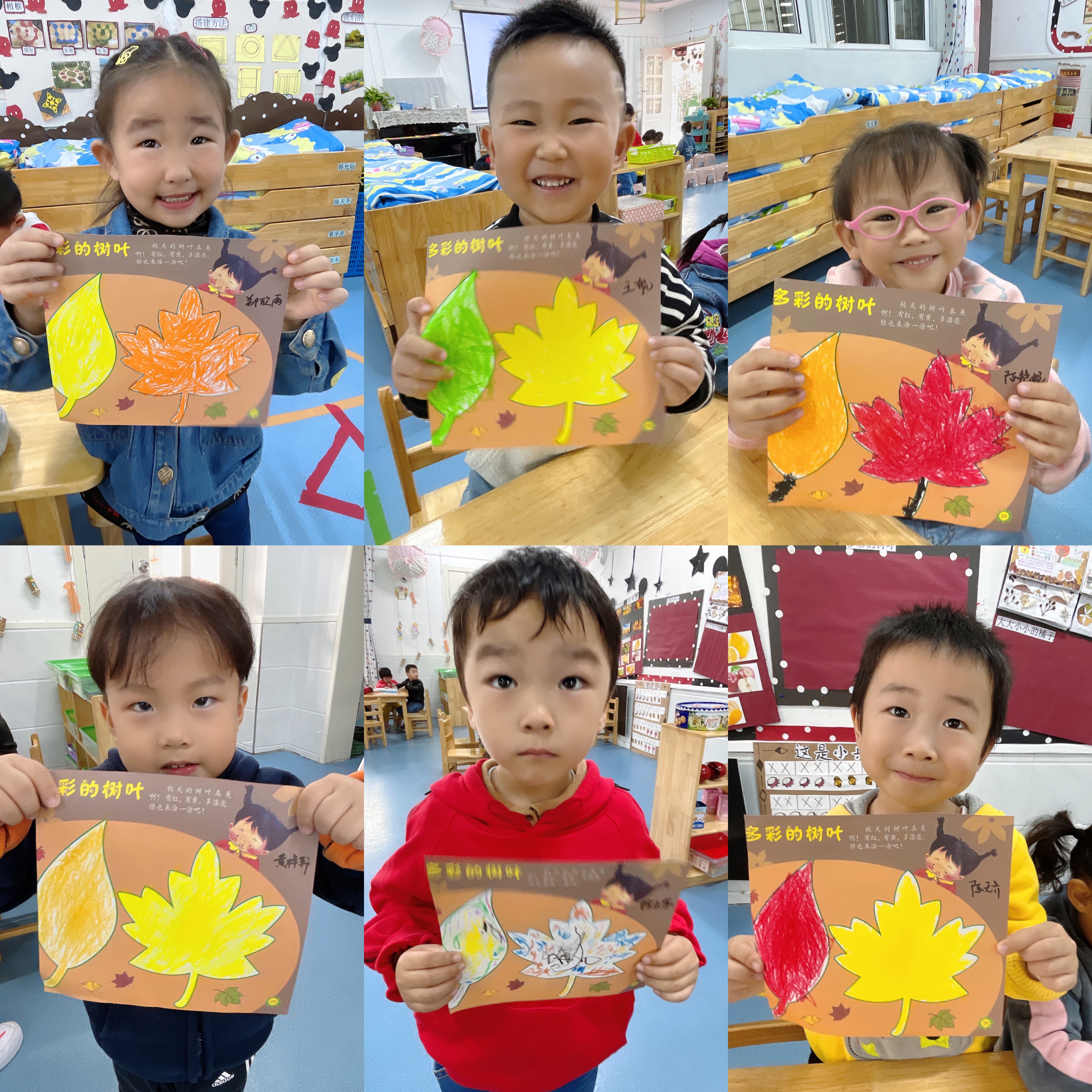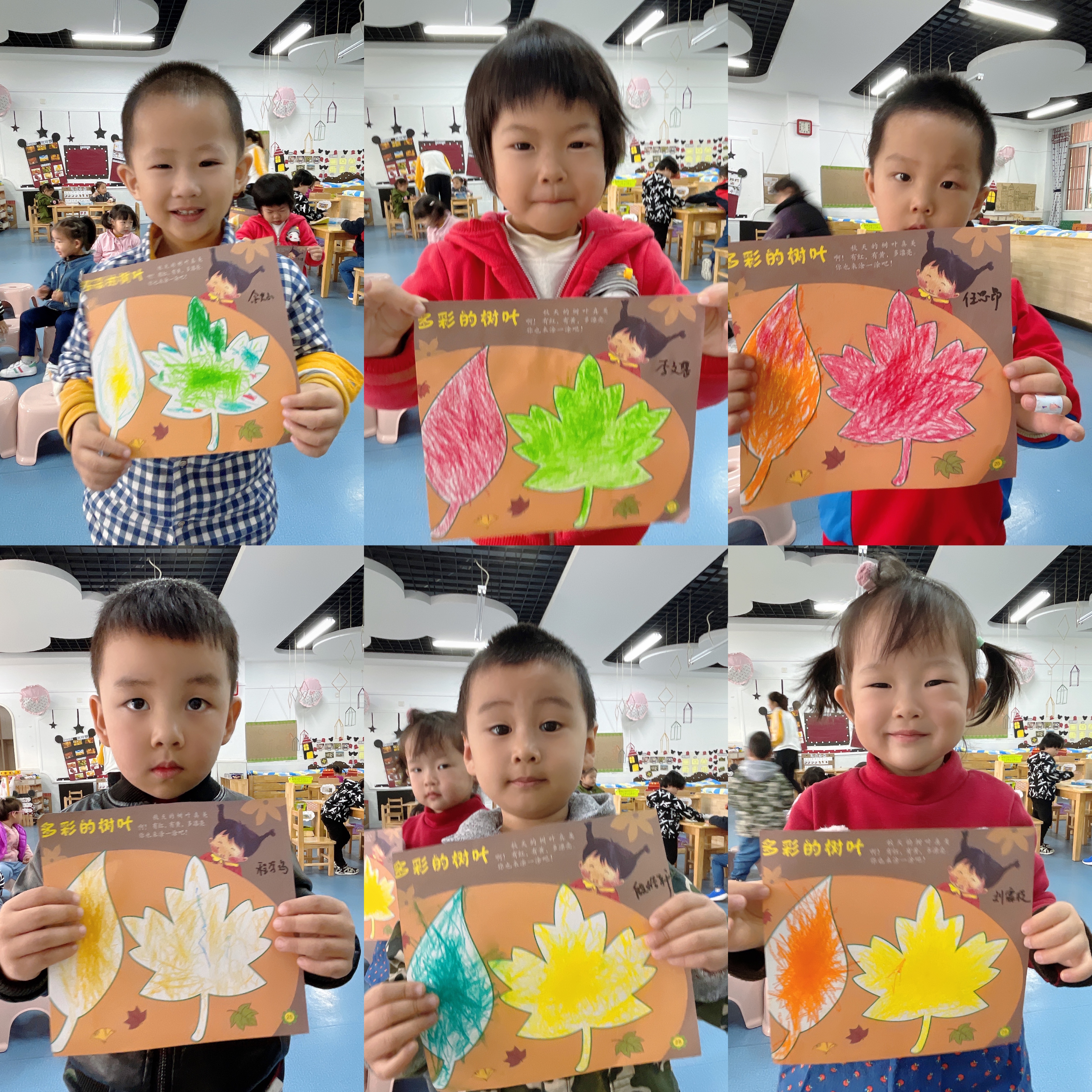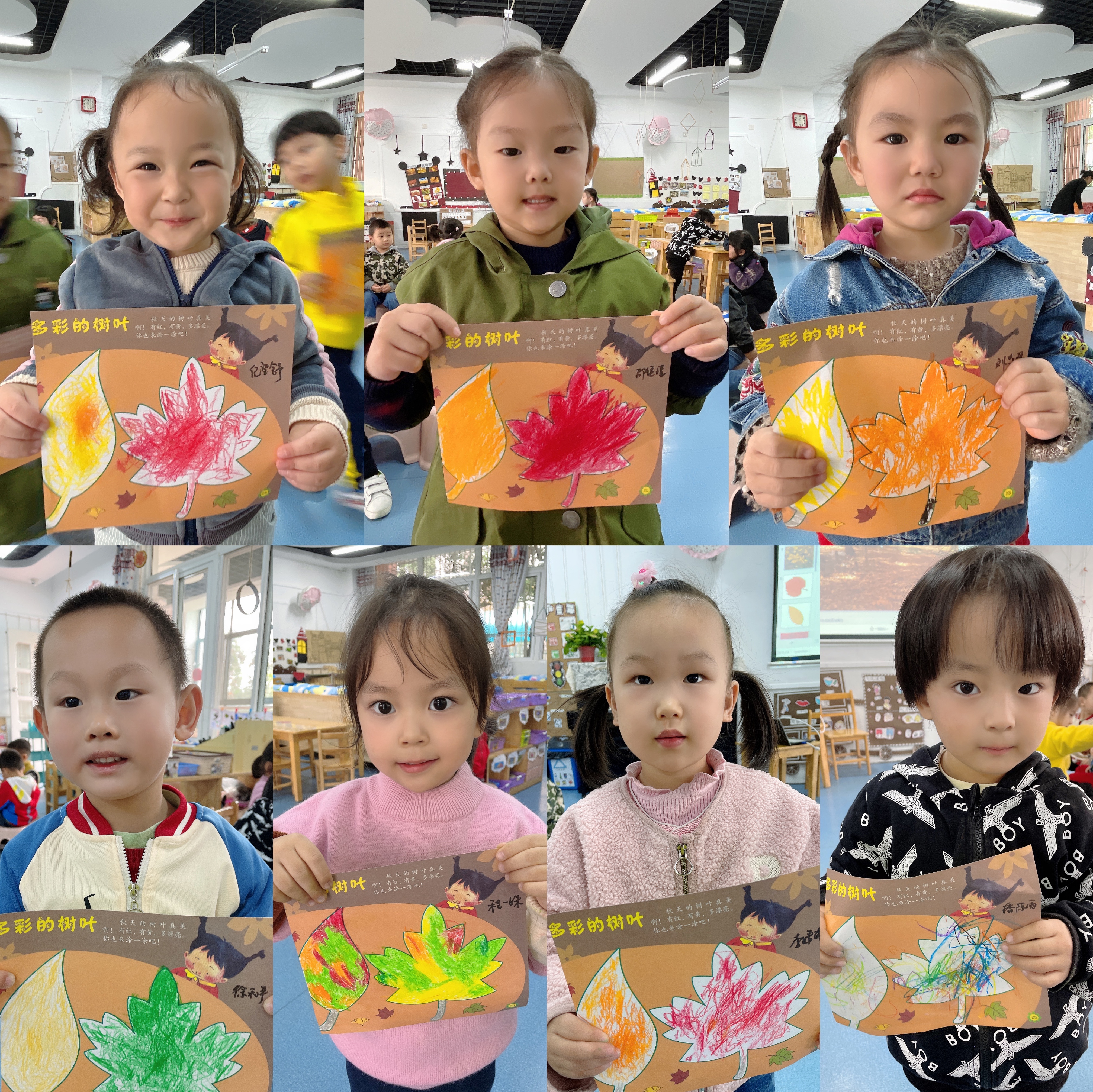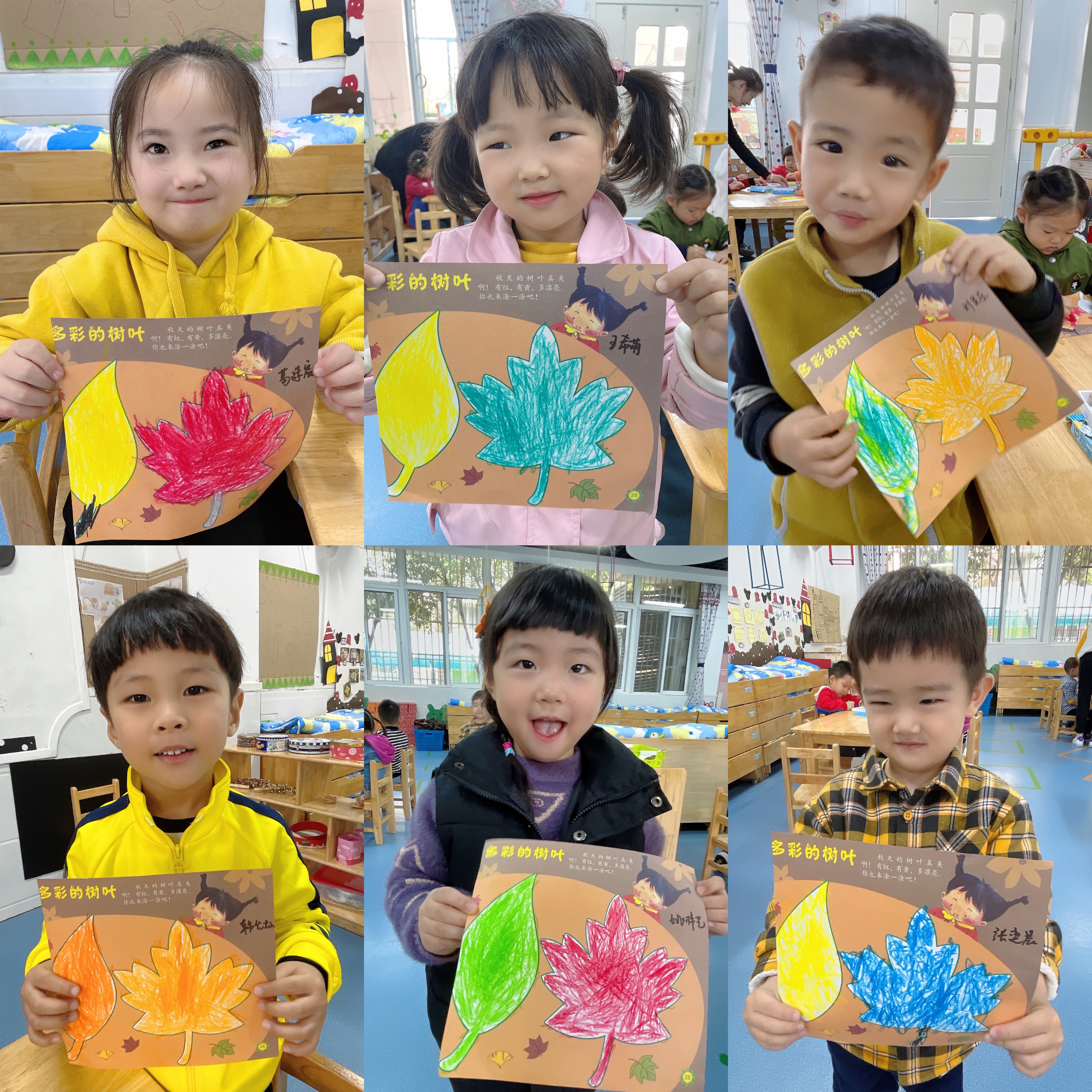 今天孩子们学习了美术活动《多彩的树叶》,在活动中我们学习正确的涂色方法,并为树叶涂上相应的颜色。耐心、细心地坚持把树叶的细小部分涂完整。同时培养幼儿喜欢美术活动,感受秋天树叶的色彩美。