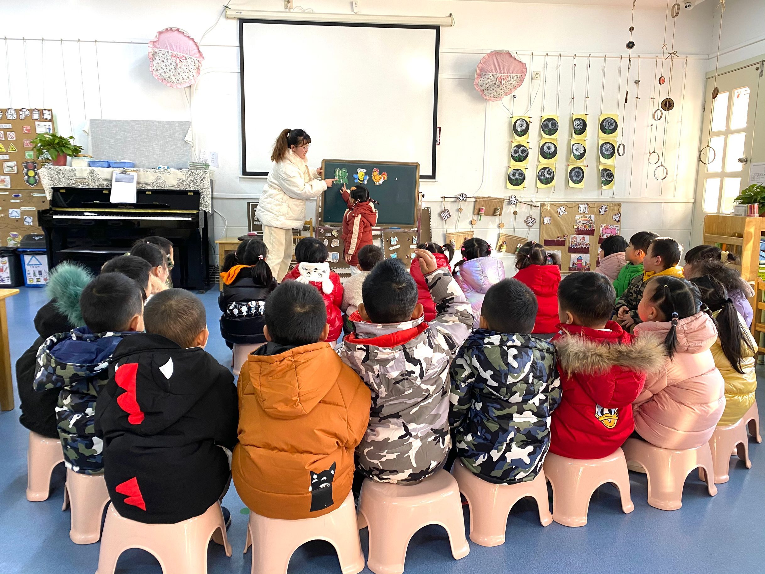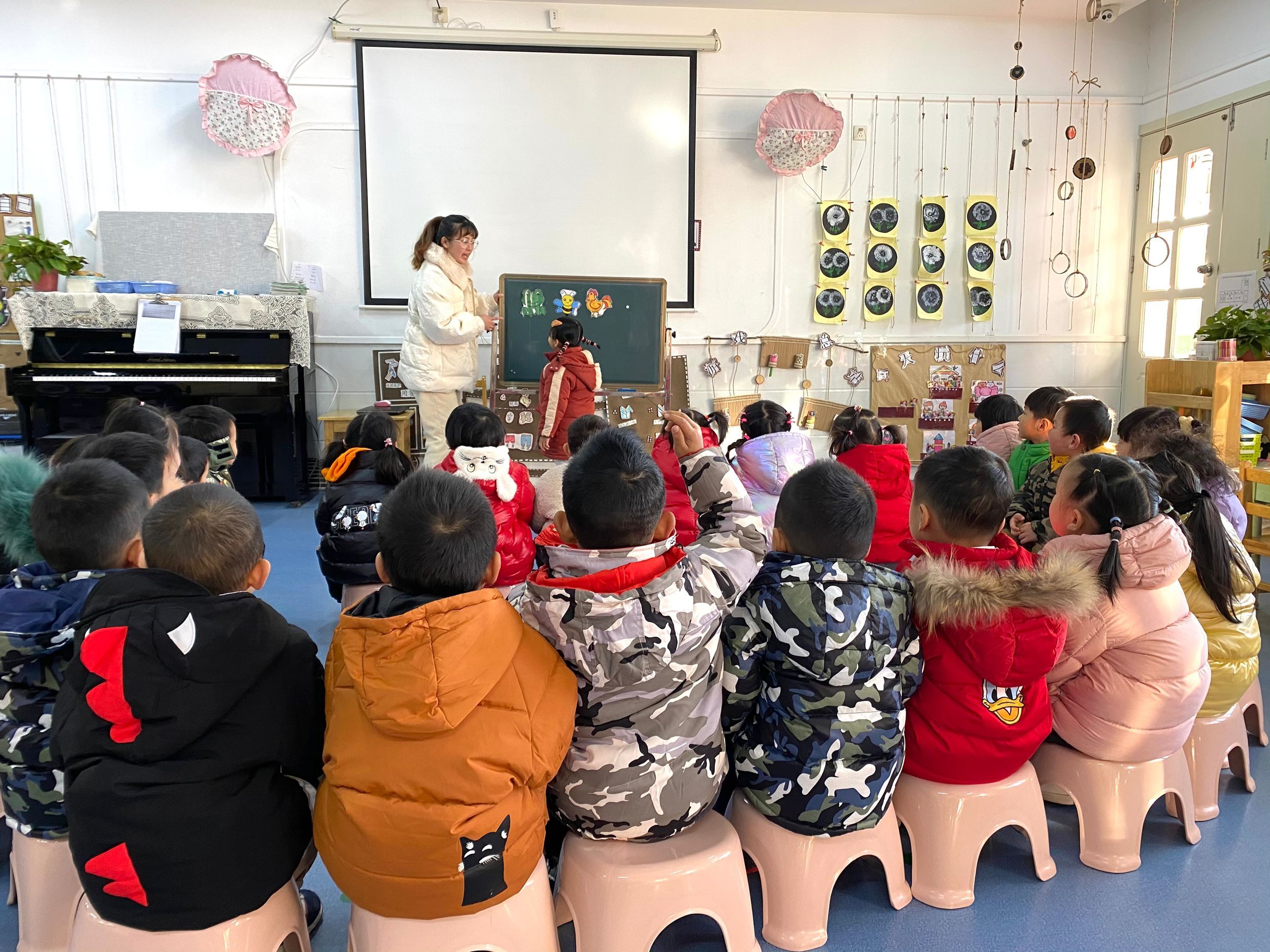 今天我们学习了歌曲《懒惰虫》在活动中我们初步学唱歌曲,能较自然地演唱歌曲,掌握弱起拍并借助动作的提示,理解并记忆歌词。在找“懒惰虫”游戏中,感受歌曲诙谐情趣,并懂得做个勤劳的孩子。