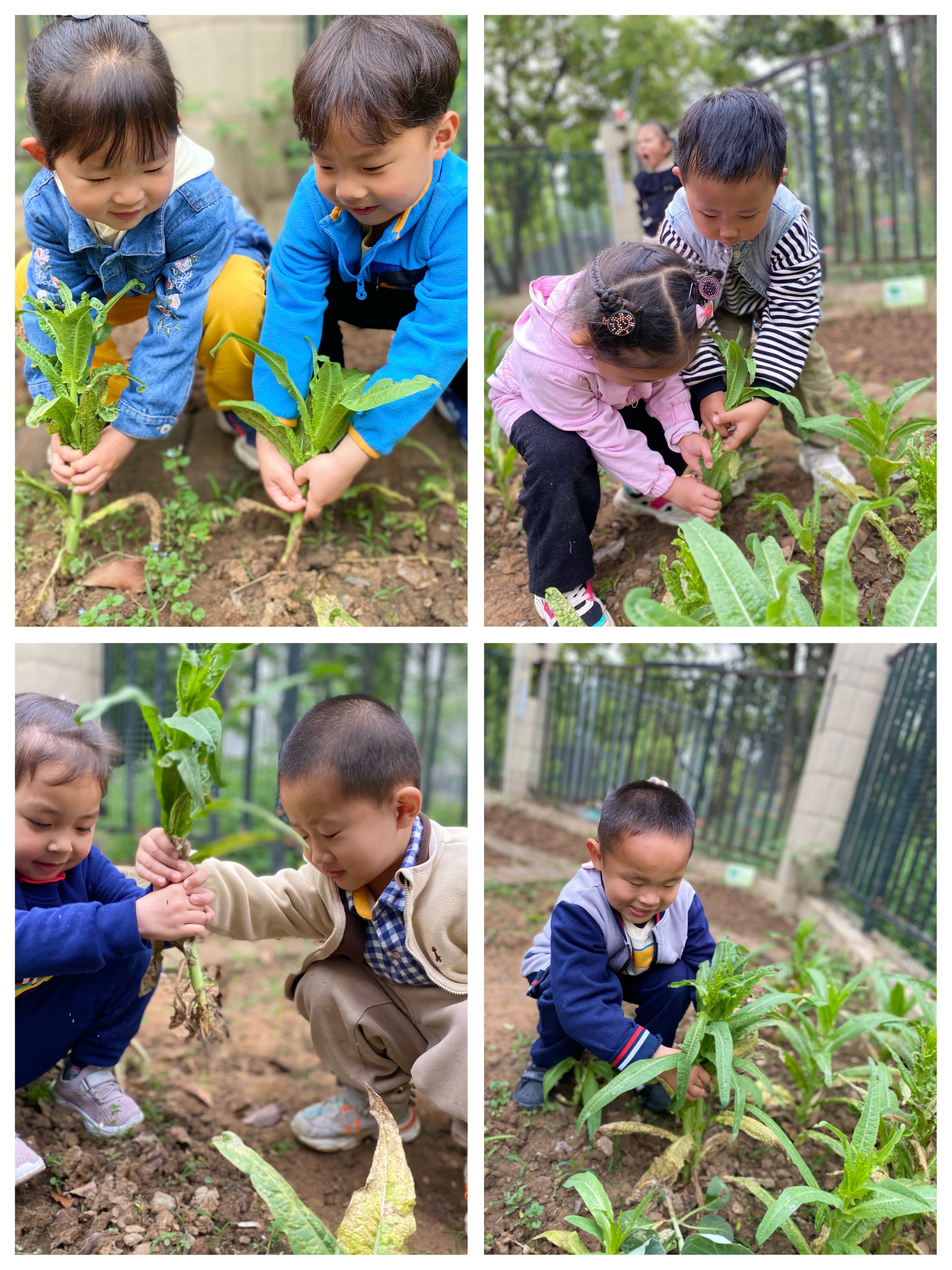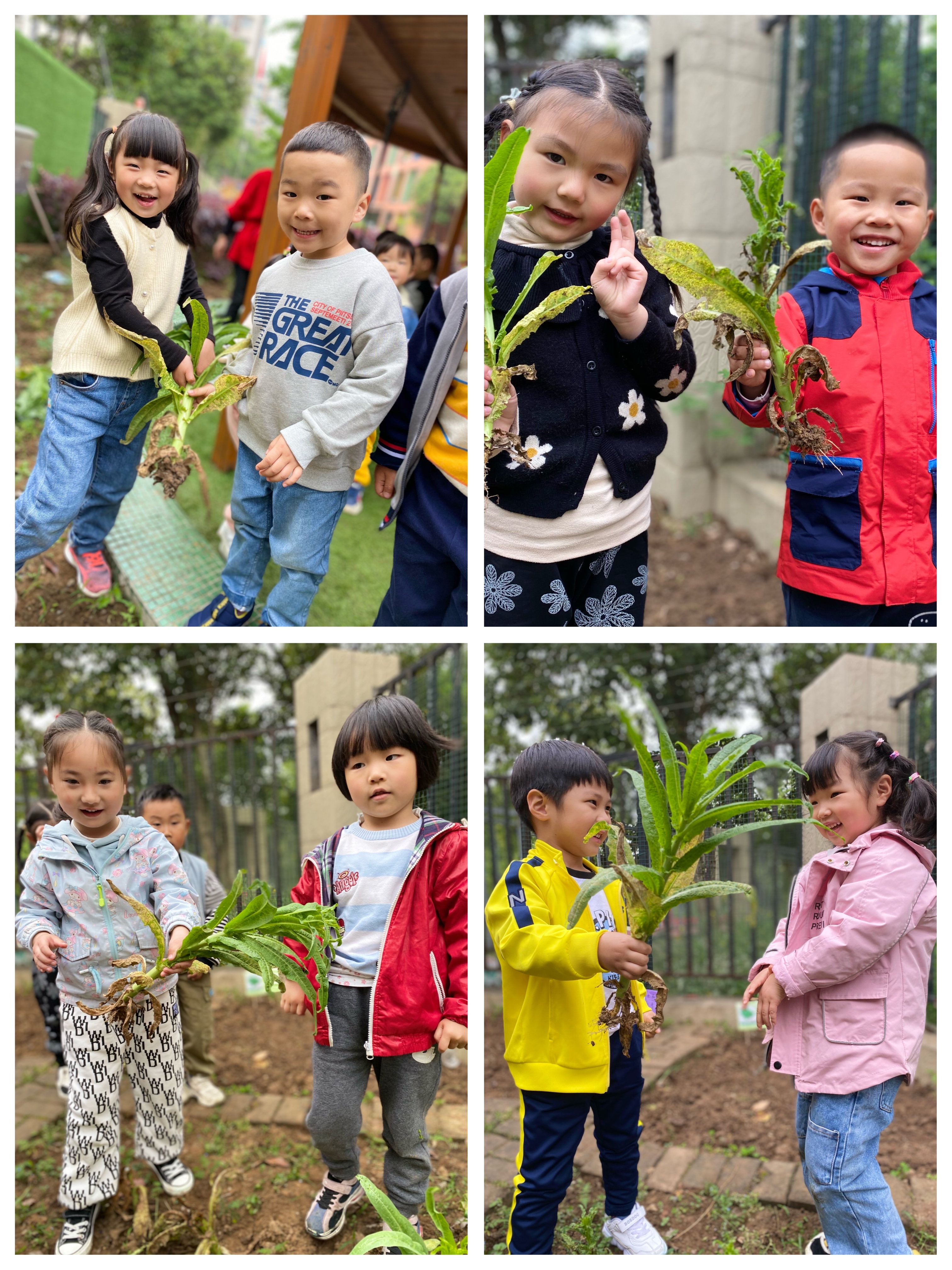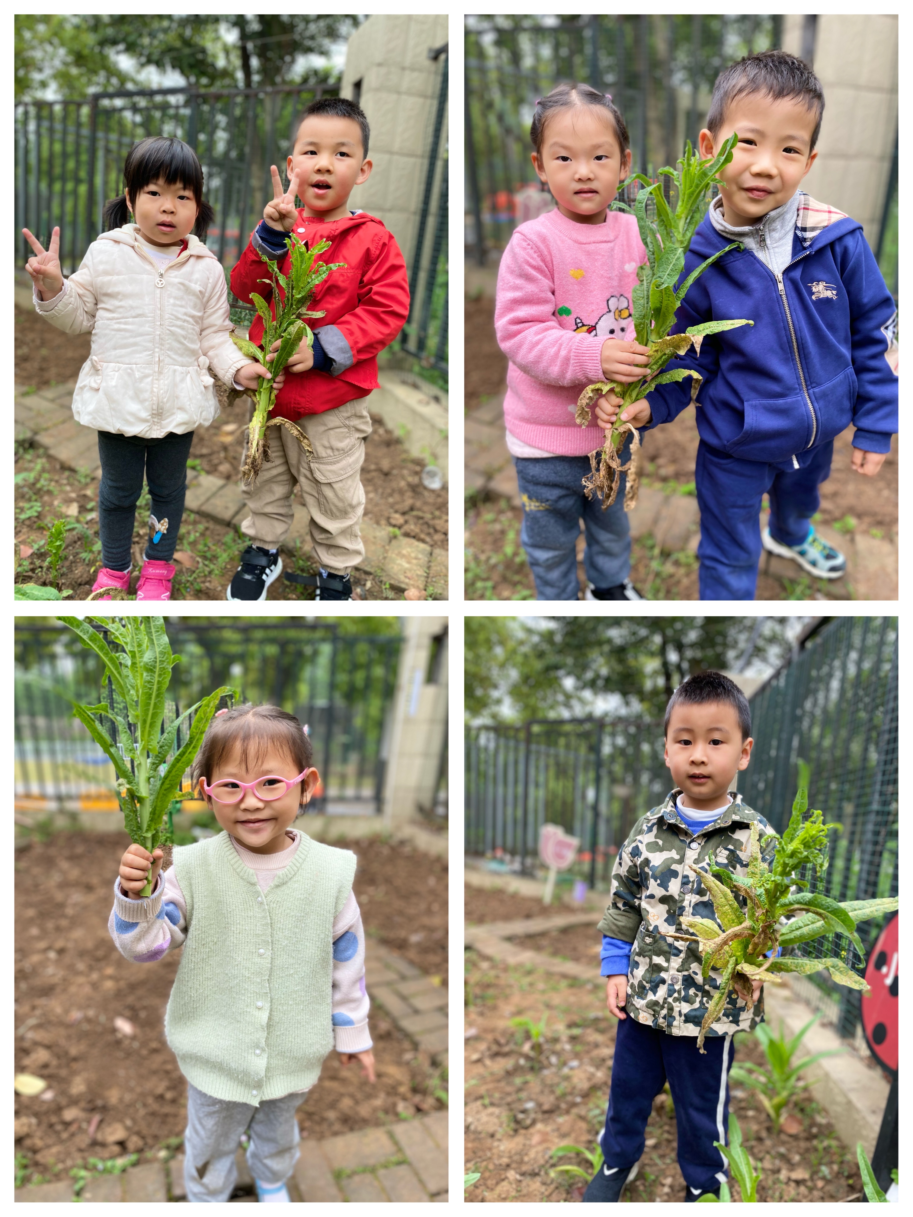 一会儿,我们就收获了很多的莴苣,当孩子们看到自己的劳动成果,都欢呼雀跃,开心不已,脸上洋溢着成功的喜悦。