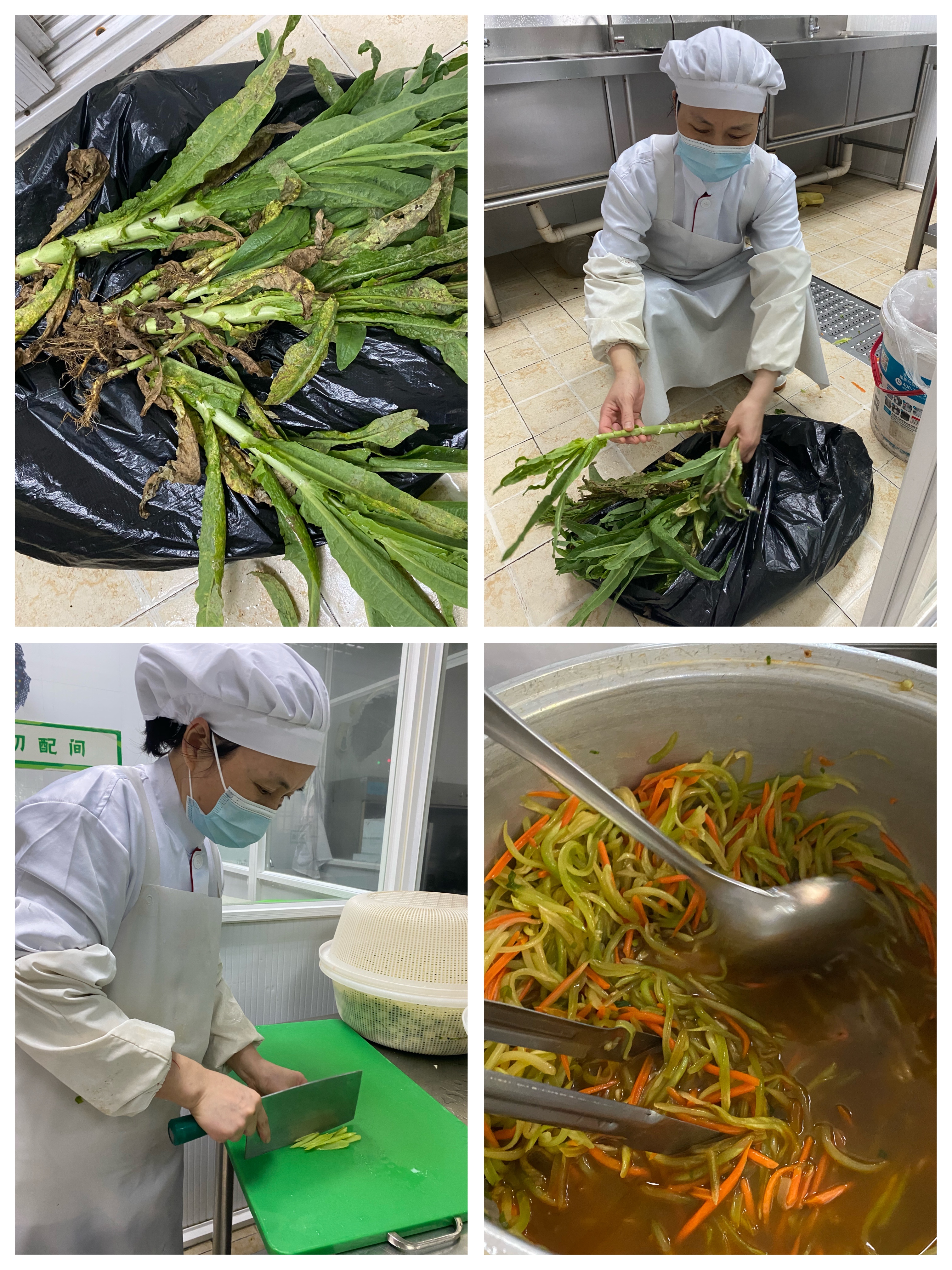 “我们要把它带回去煮煮尝尝!”孩子们将收获的莴苣送到了厨房,请厨师帮助我们把它变成美味佳肴,与幼儿园的小朋友分享。