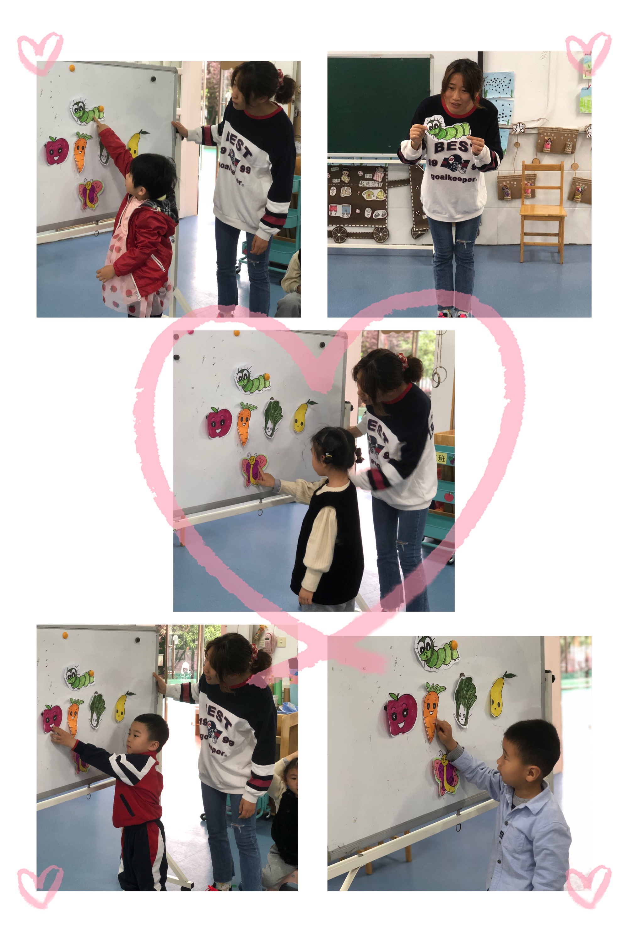 孩子们扮演的都很棒,我们要像毛毛虫一样各种食物都要吃,才能长高长壮。