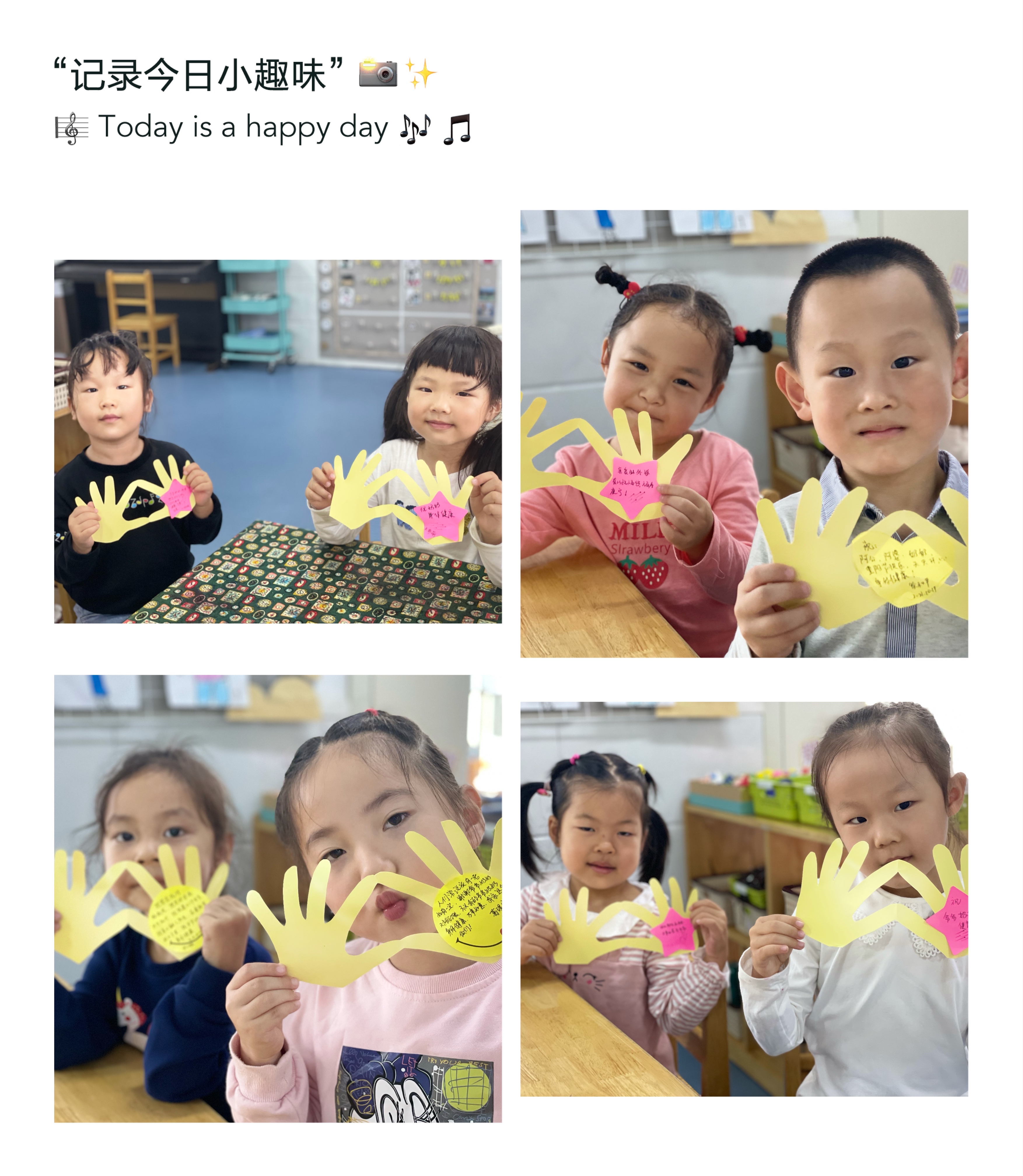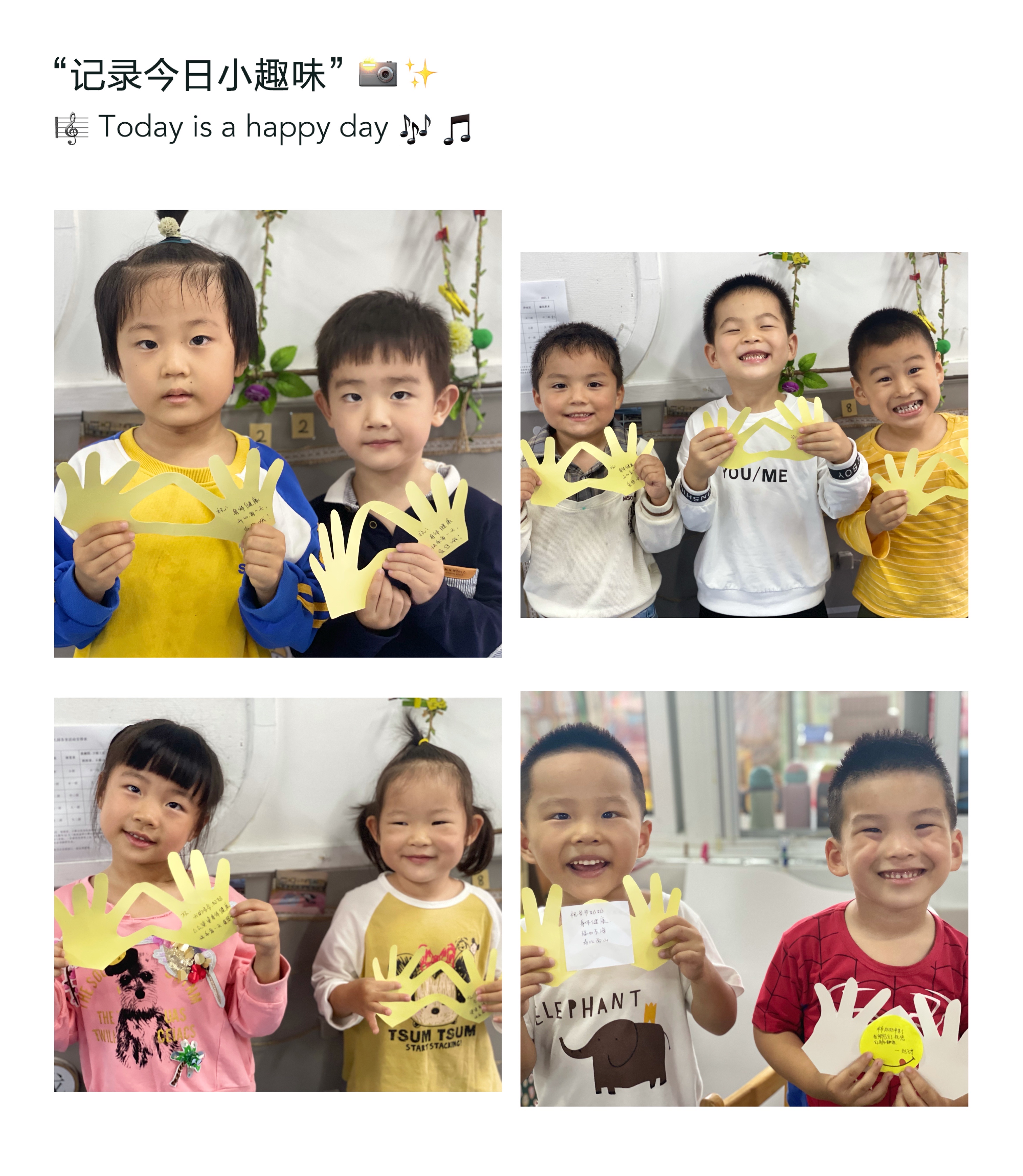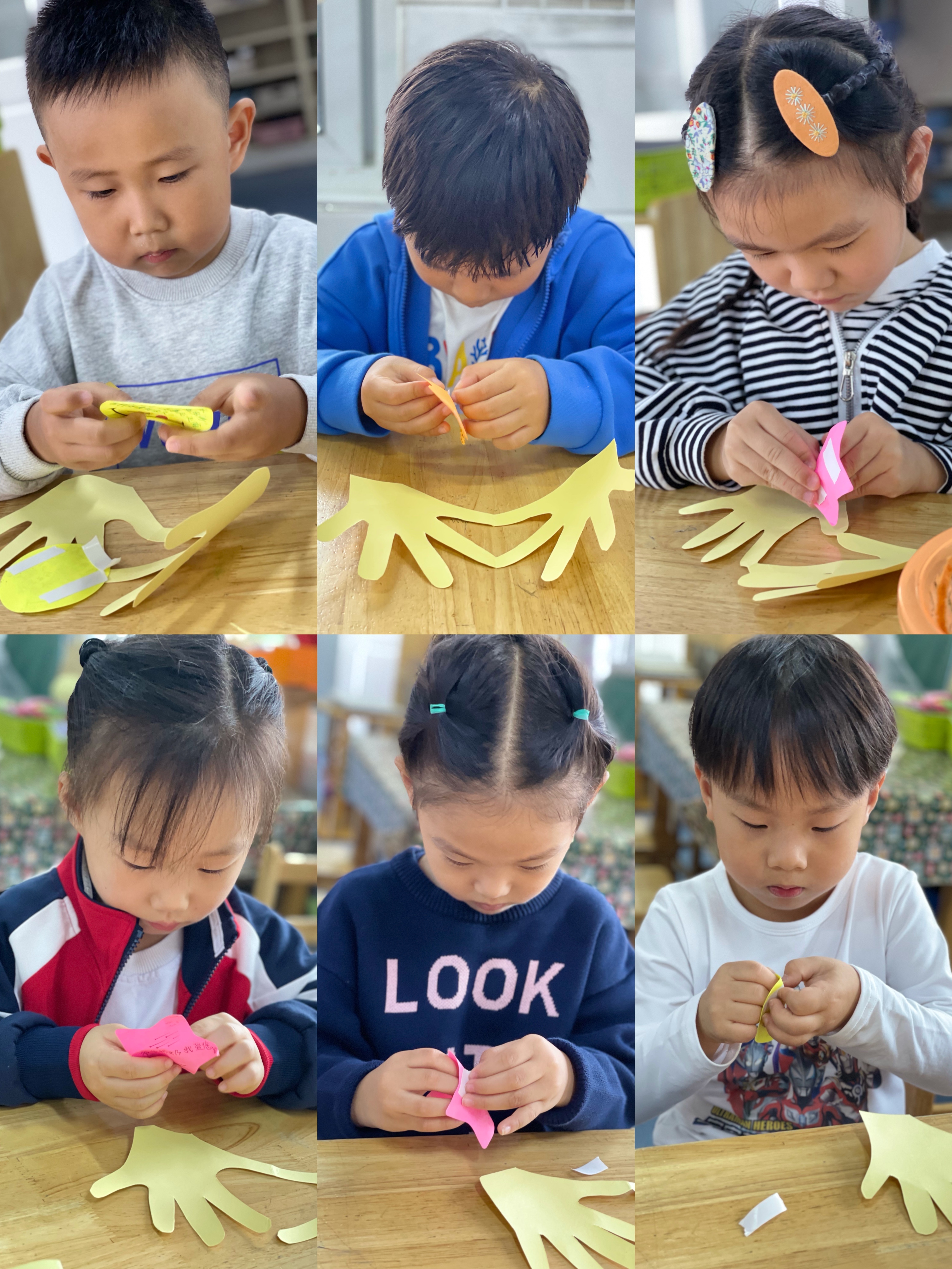 瞧,我们在给爷爷奶奶制作惊喜呢,亲手制作的小小贺卡,藏着我们浓浓的爱。