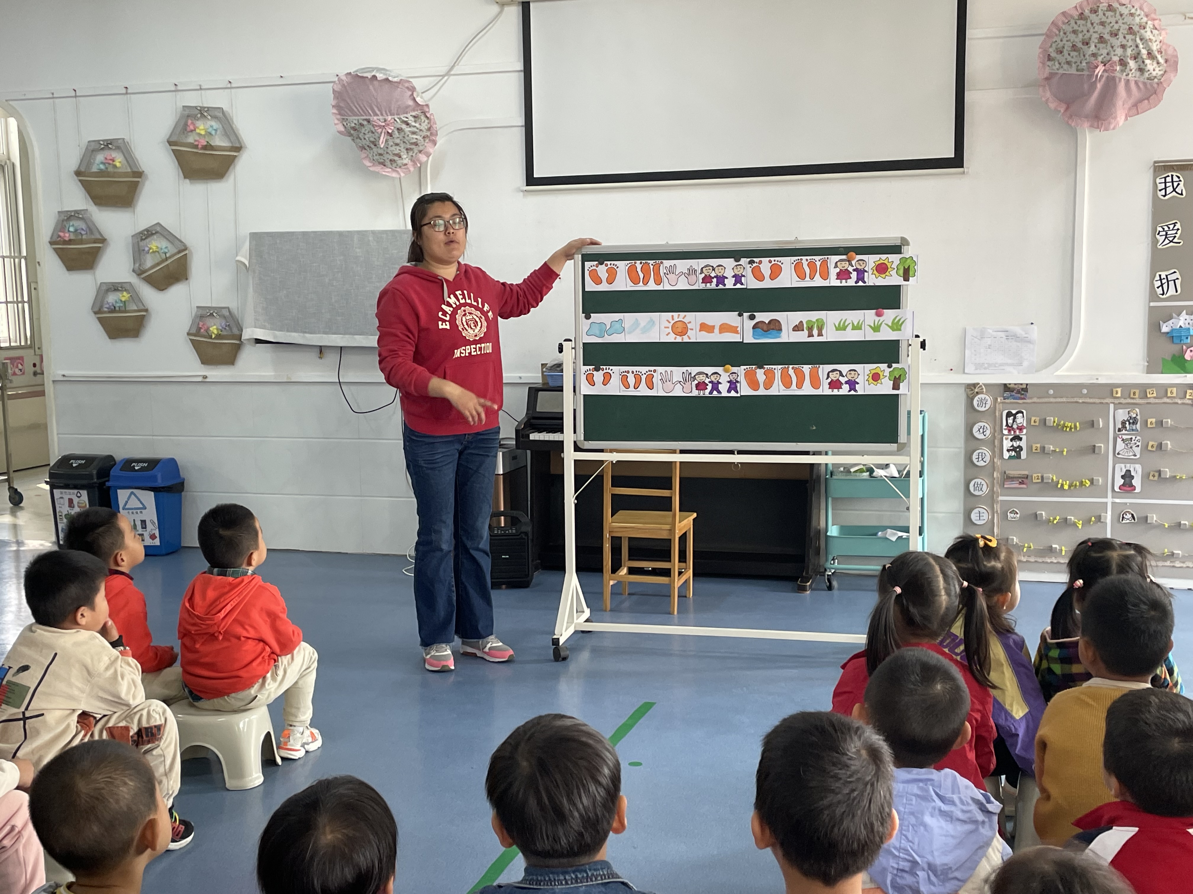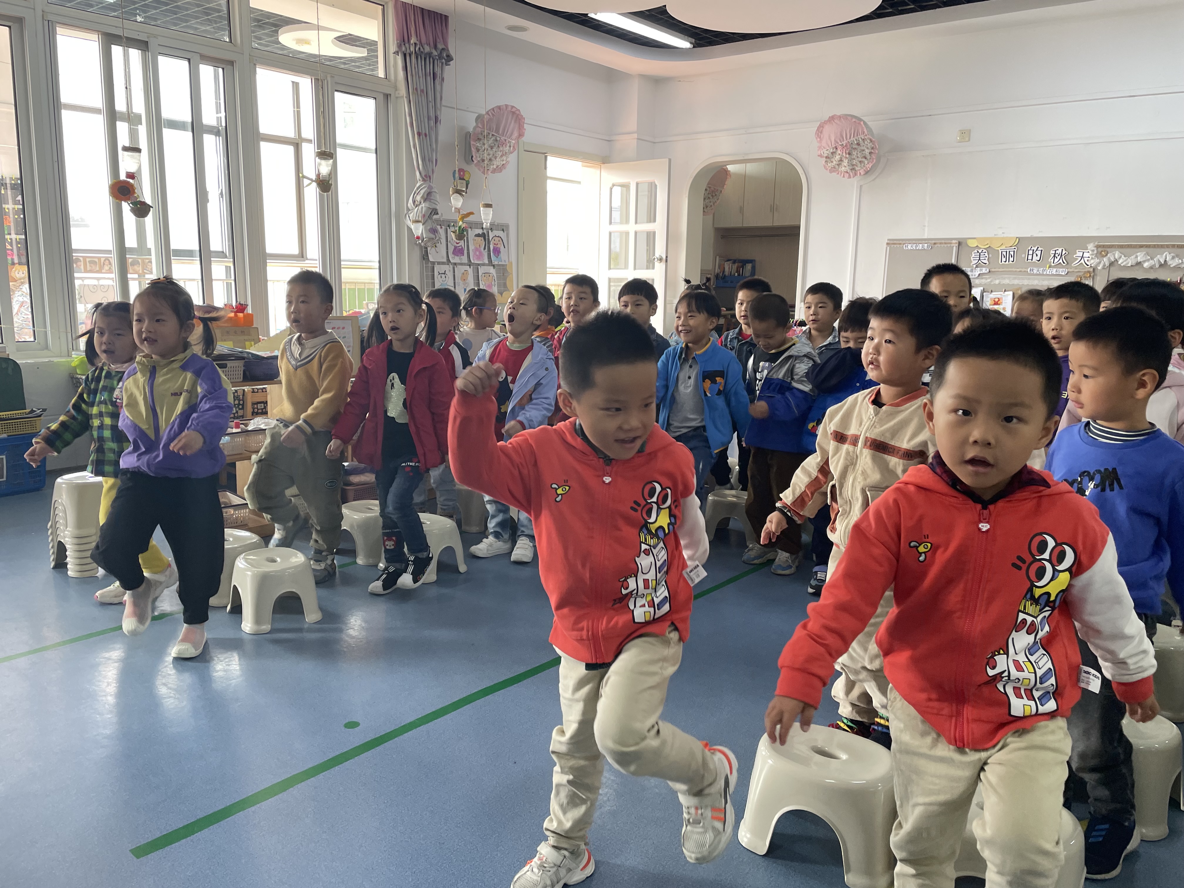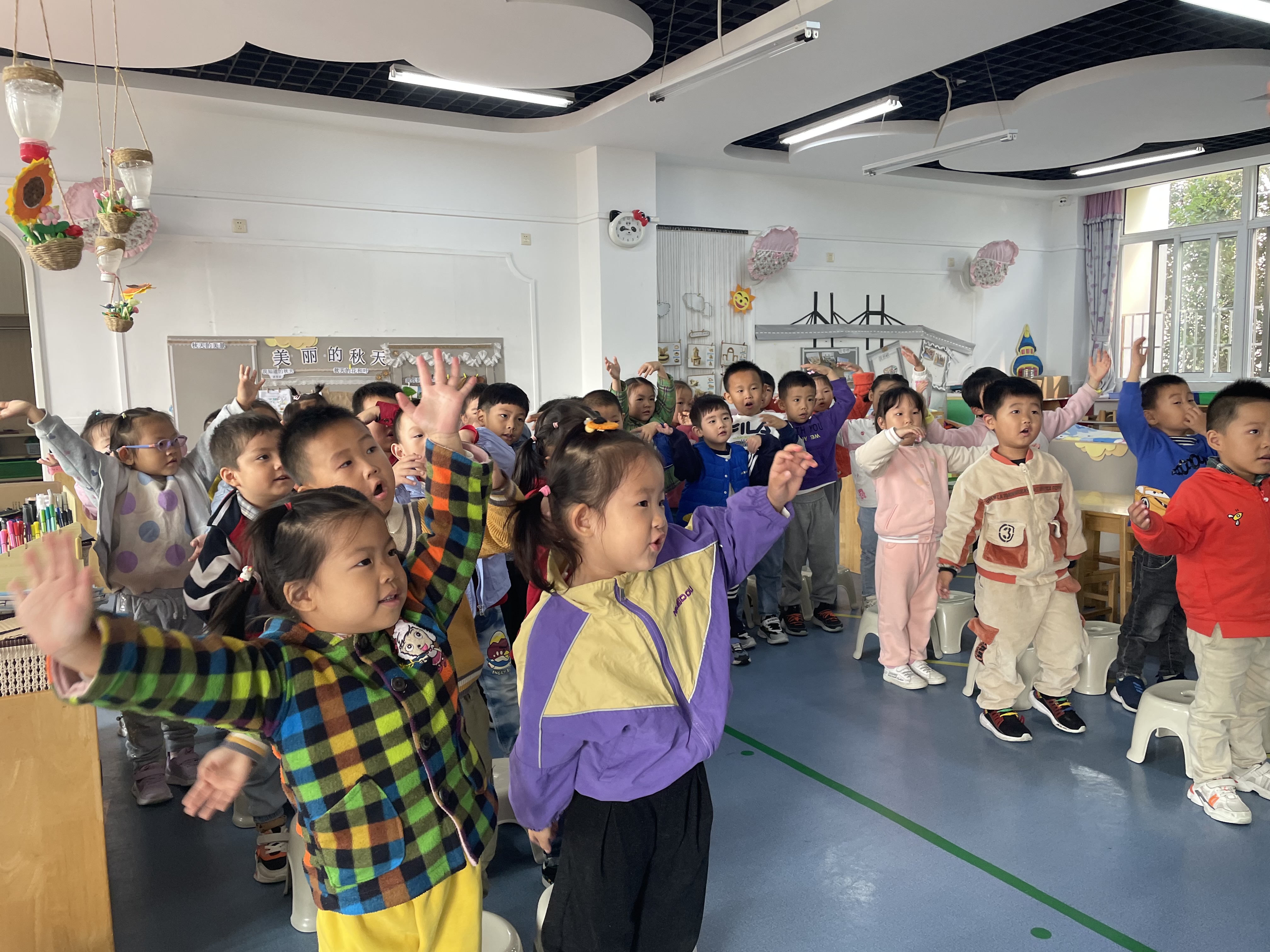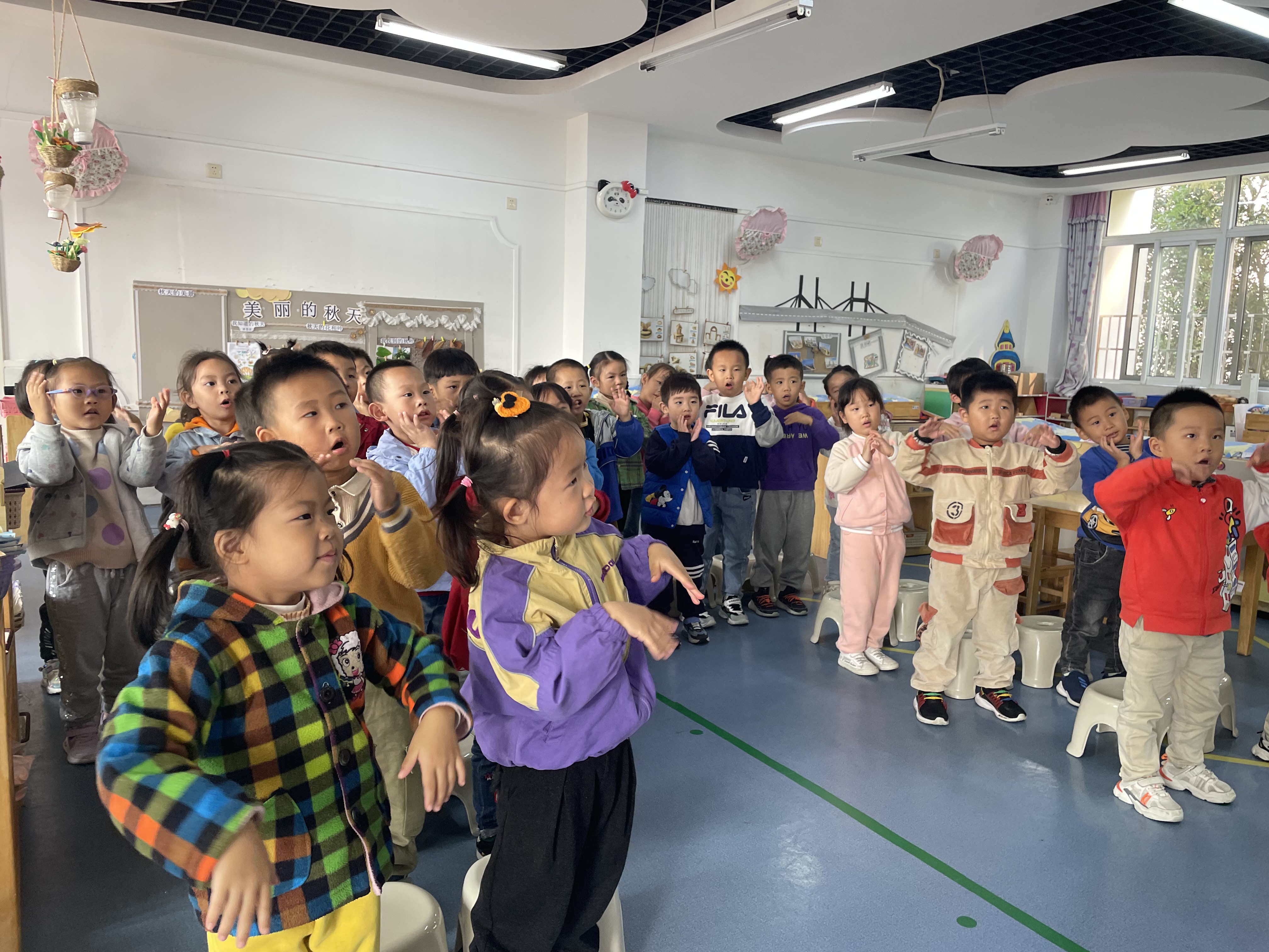 我们歌词都掌握了,并且会唱了,这次我们加上动作,边唱边表演。