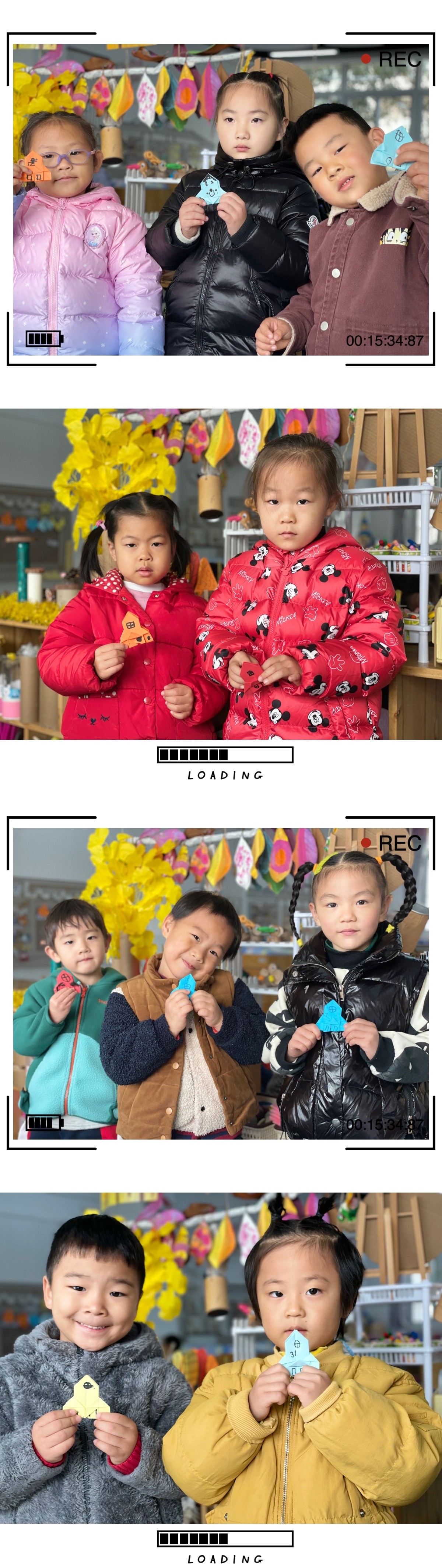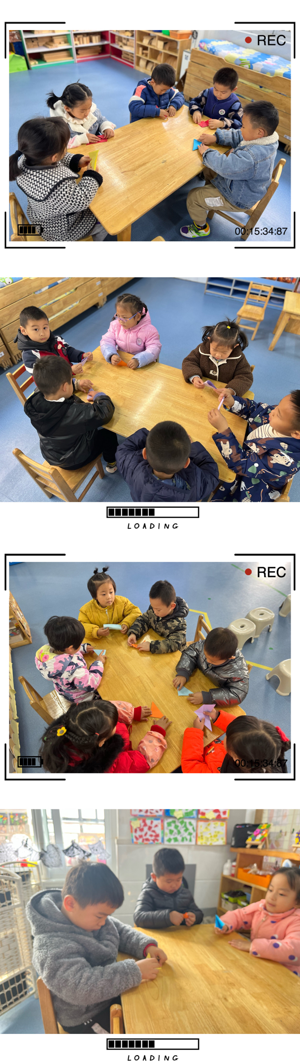 活动中孩子们一个个听的都很认真,要折出漂亮的小楼首先先要会折双三角,在会折双三角的基础上折出小楼。孩子们每折一步就看有没有对齐,每一步都要压压平。看一看认真动手折纸对我们棒棒哒!