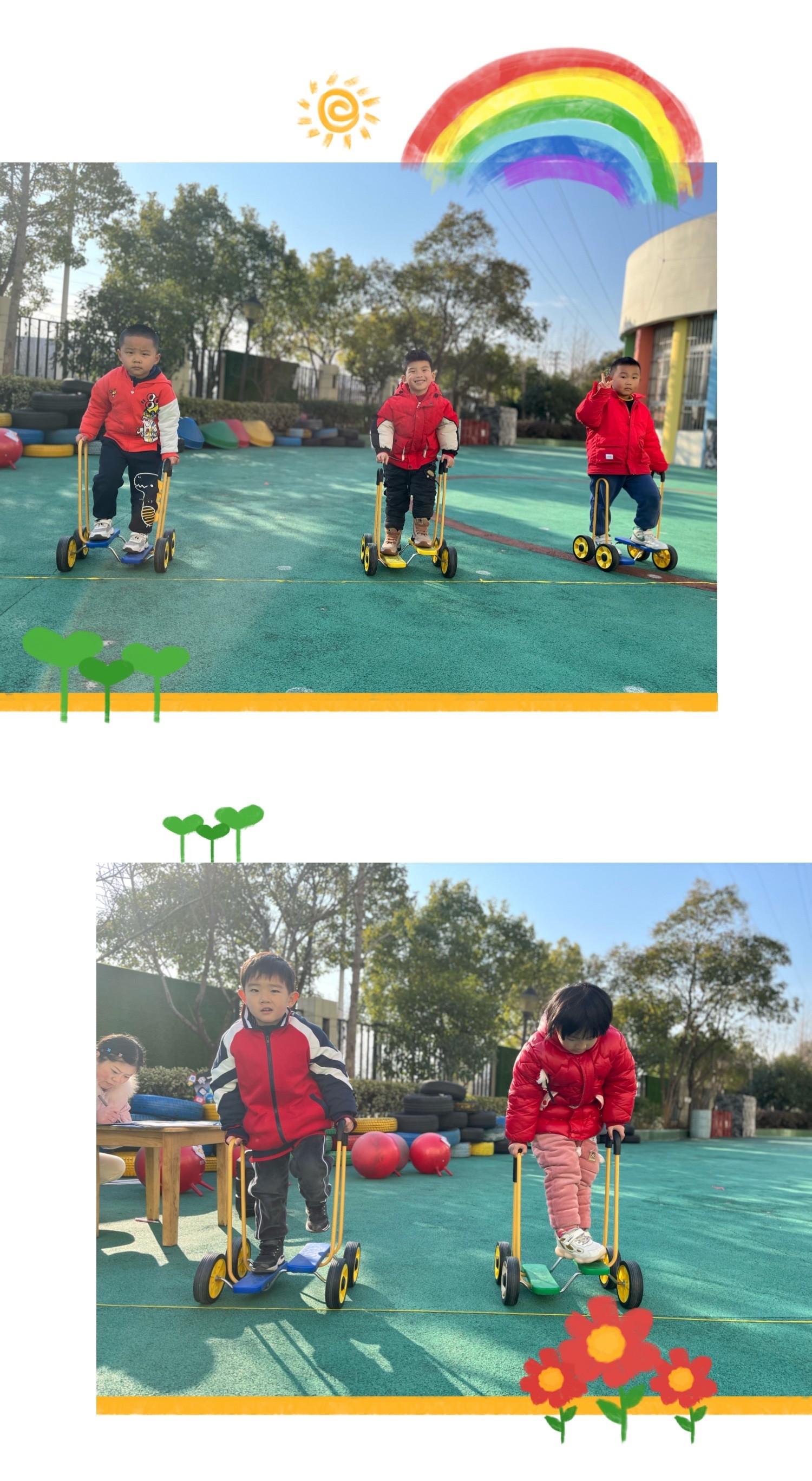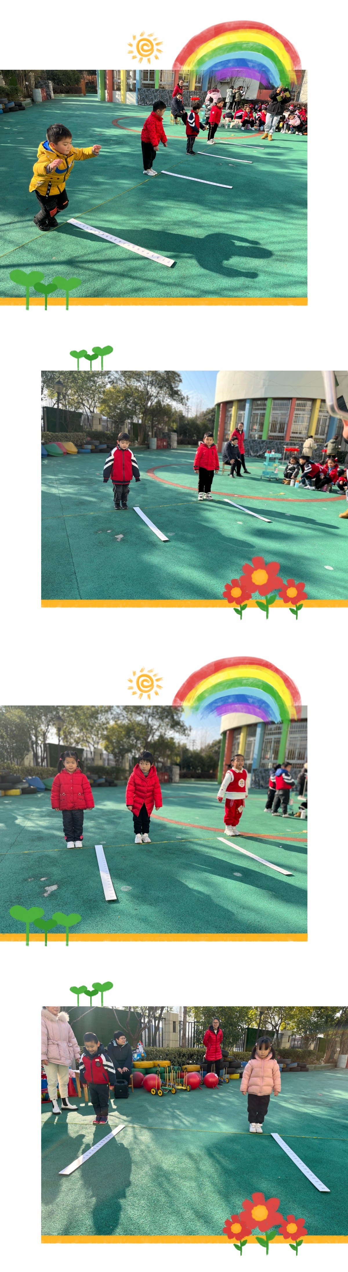 在孩子和老师们的欢声笑语中,我们幼儿园冬季运动会圆满落下了帷幕。小朋友的运动热情点燃了这个温暖的冬日,一张张幸福的笑脸定格成了冬日里最美的风景~~本次活动可以说是孩子的一次综合实践活动的展现,不仅锻炼了身心,更是磨练了意志。