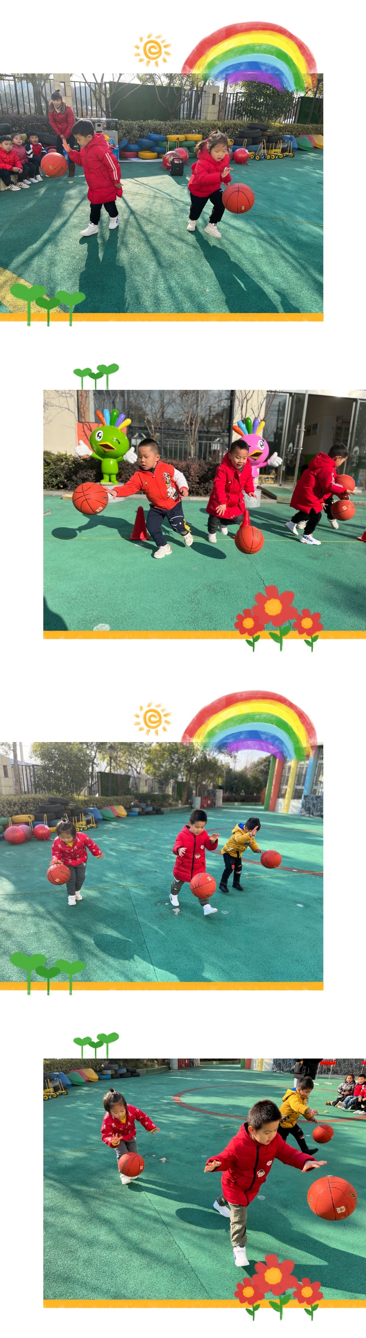 比赛开始了,运动会项目丰富多彩:有幸福接力、球随我动、萌虎下山、快乐拍球、财源滚滚、如虎添翼等项目,比赛一项接一项本着“友谊第比赛第二”的原则紧张有序的进行,小运动员们积极投入,大声呐喊着加油!加油、、、、、、