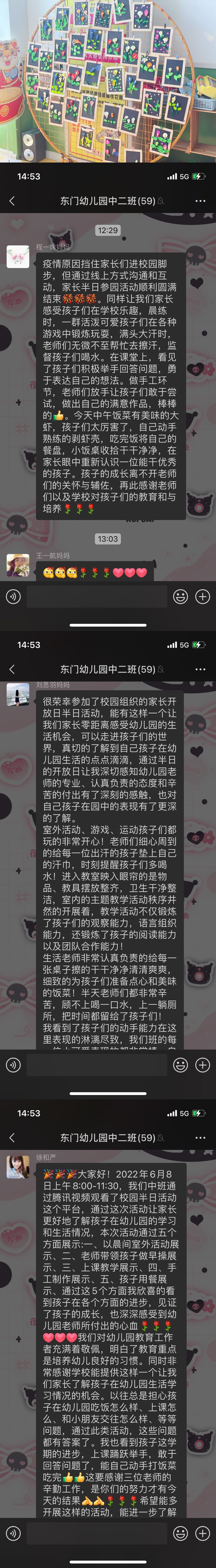 家长们观看了半日活动的线上直播,看到了孩子们在园的表现,感受到了他们的成长与进步,感谢老师们的辛苦付出,同时也提出了许多宝贵且温馨的建议。通过线上半日活动的方式,加强了家园间的对话与沟通。