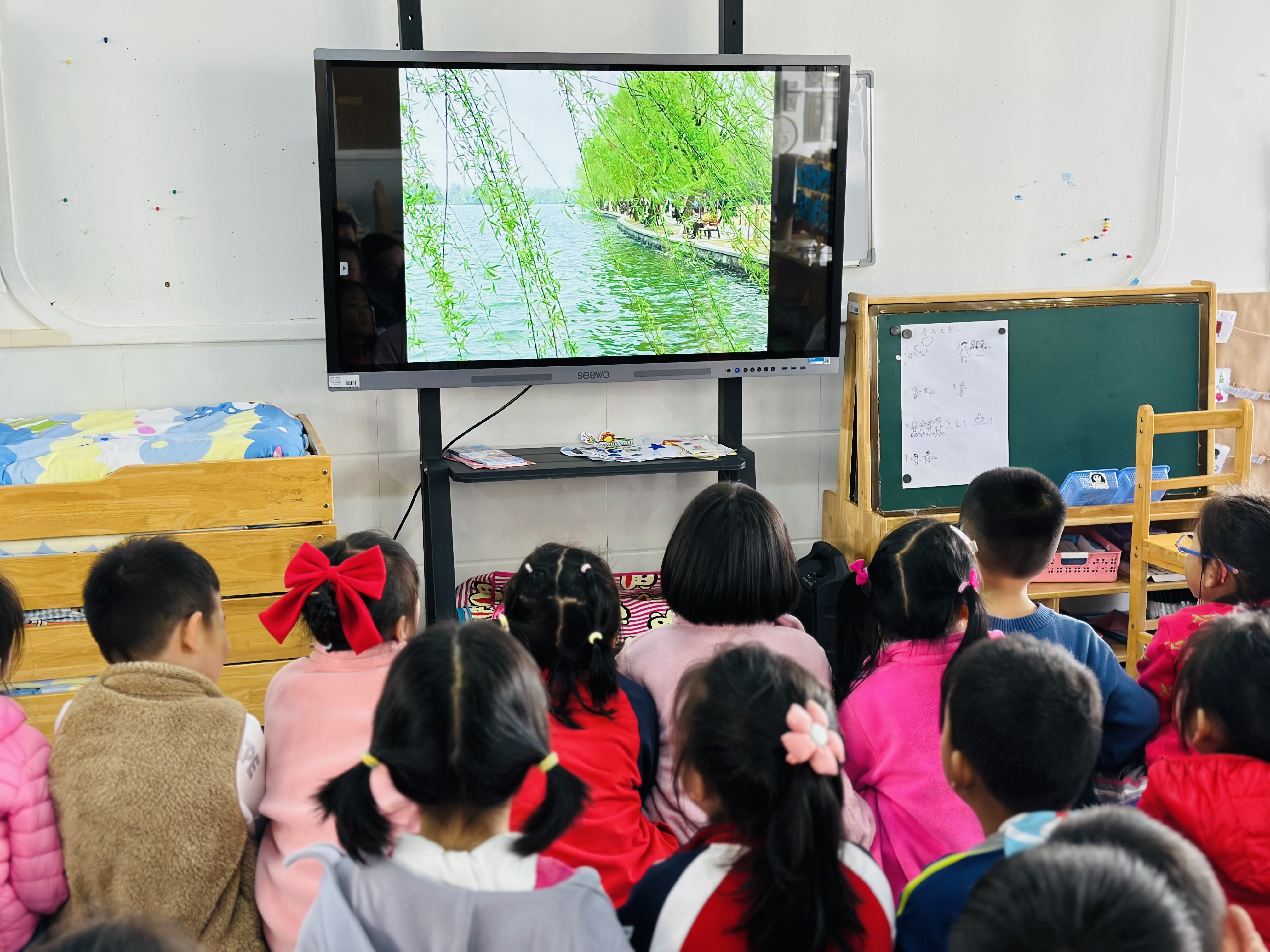 《柳树姑娘》是一首三拍子的羽调式歌曲,曲调优美、舒展,歌词运用拟人化的手法,便于幼儿理解、学唱。本次活动在带领幼儿观察柳枝随风摇摆的优美姿态的基础上,引导幼儿用优美的声音表现柳树姑娘拖着长长的辫子的样子,启发幼儿轻快活泼的声音表现柳树姑娘高兴地在池塘洗头发。