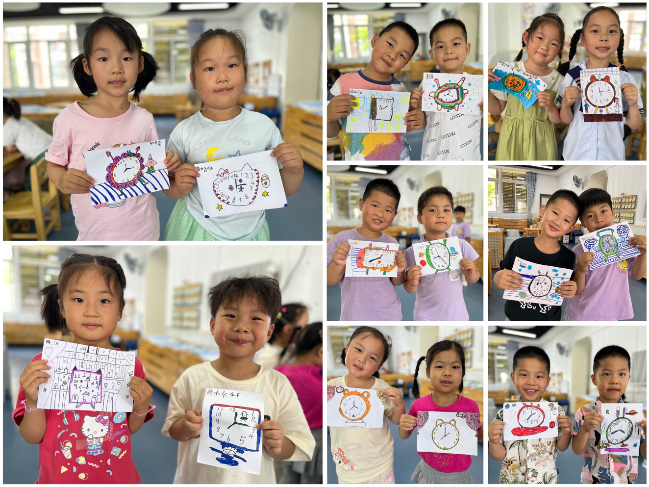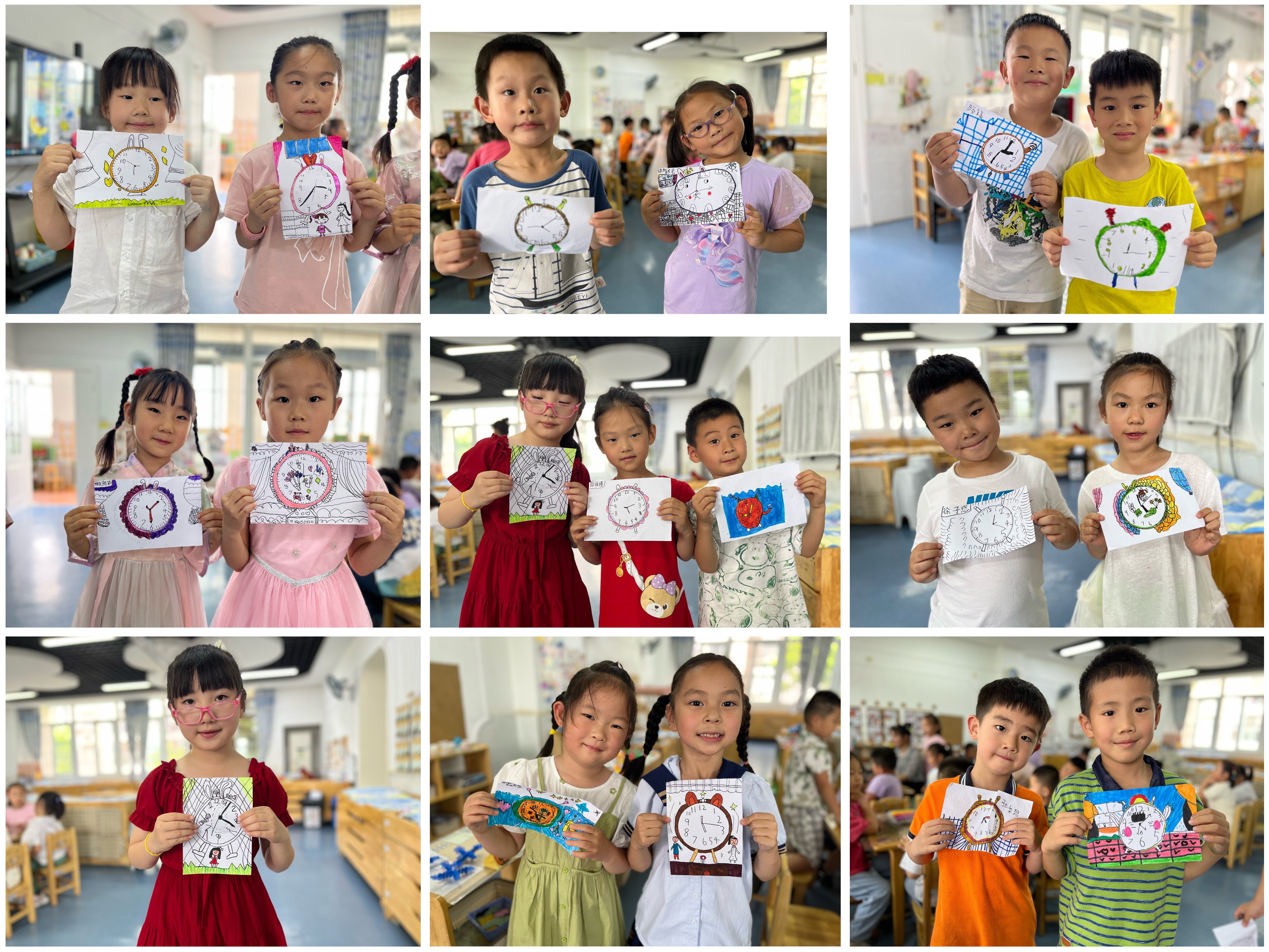 《指南》中指出:“艺术是人类感受美、表现美和创造美的重要形式,也是表达自己对周围世界的认识和情绪态度的独特方式。”孩子们在进一步认识和了解时钟后,对时钟的兴趣日渐浓厚,又产生了新的想法。时钟不该只有一种形状。有小朋友提出说:“为什么时钟都是圆形的呢?还有的小朋友说:“我要设计一个正方形的闹钟!每个小朋友都有不同的想法,大家一起设计一个不一样的时钟,让我们一起去看一看吧!