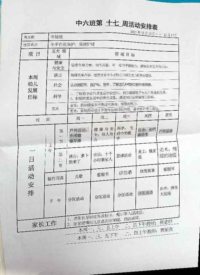 2021秋第17周活动安排表