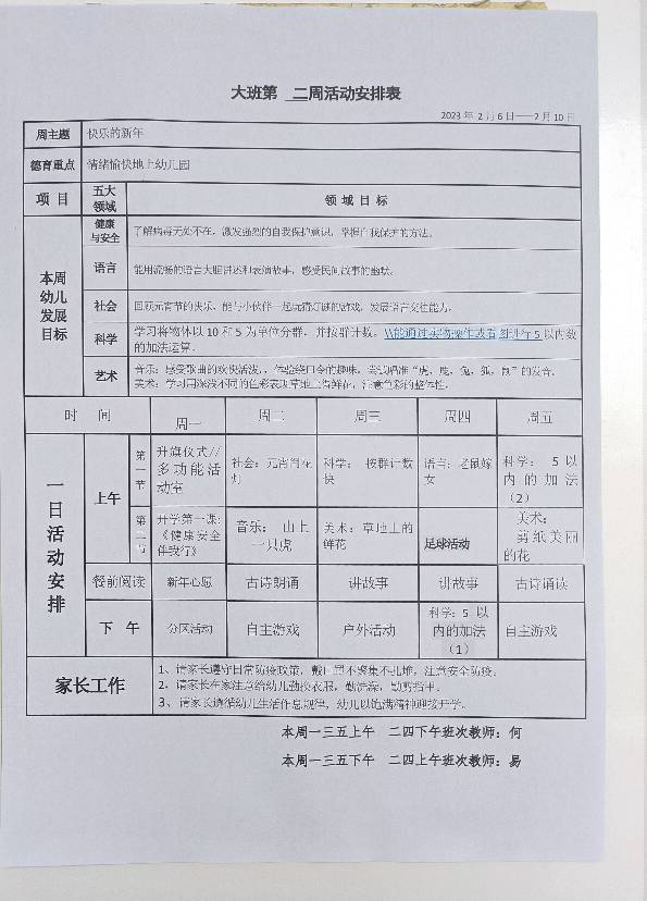 2023秋第2周活动安排表