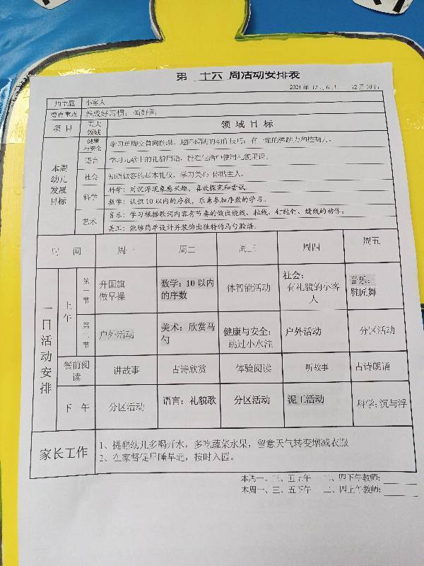 第十六周周计划表