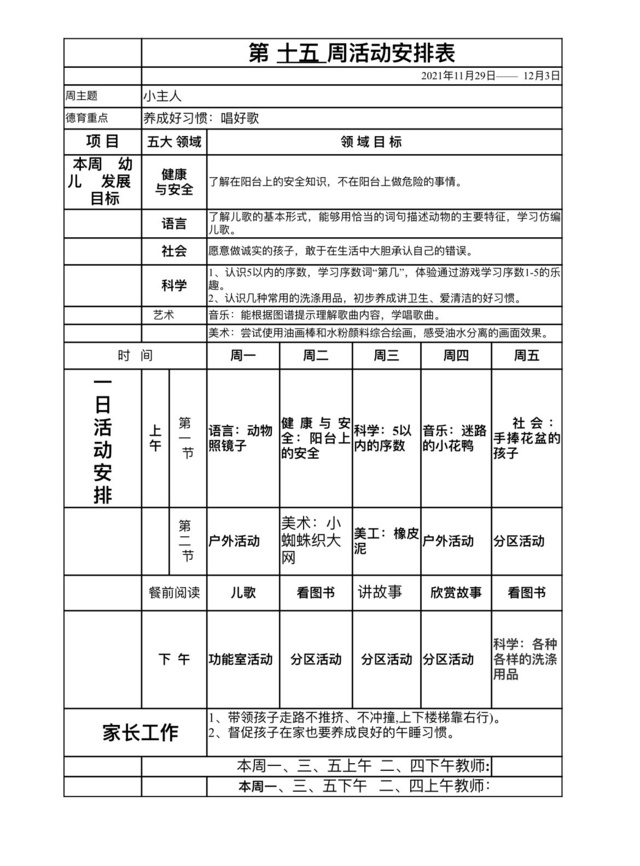第十五周教学计划