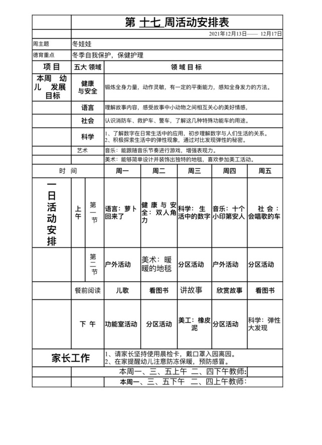 第十七周教学安排