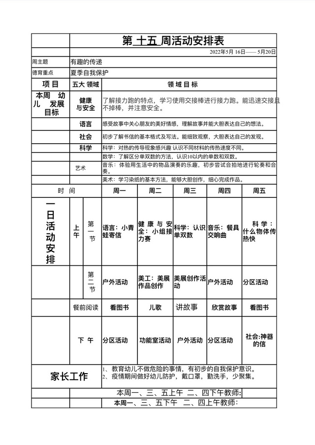 第十五周教学安排