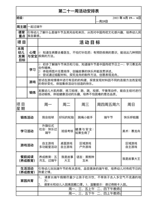 第二十一周教学活动安排