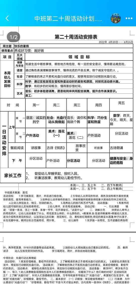 第二十周计划