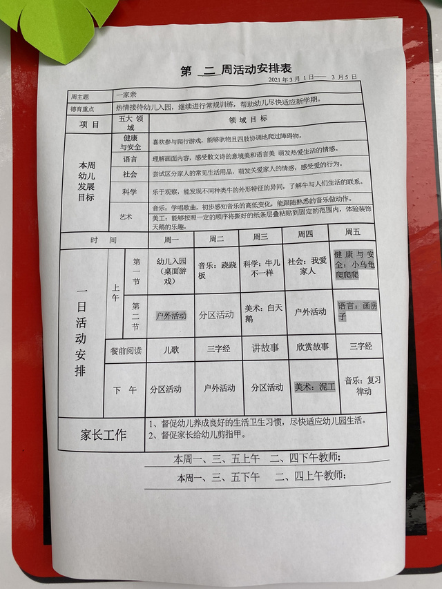春第二周周计划