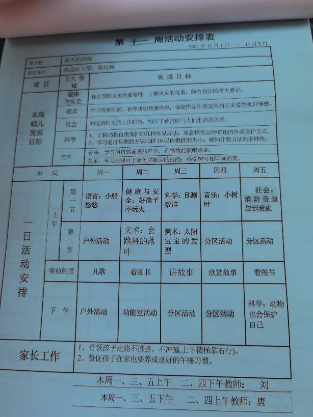 第十一周活动计划