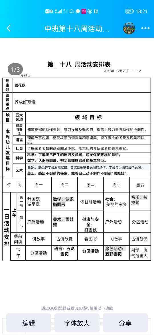 第十八周活动计划