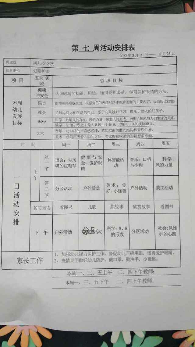 第七周活动安排表