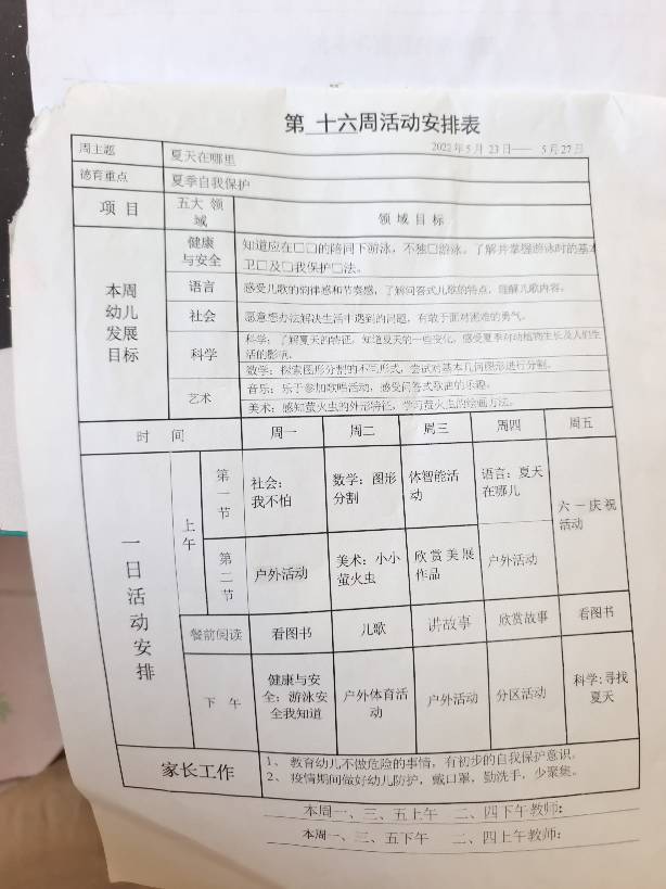 十六周活动安排