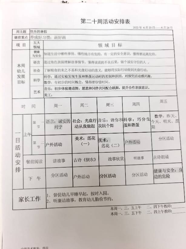 第二十周计划