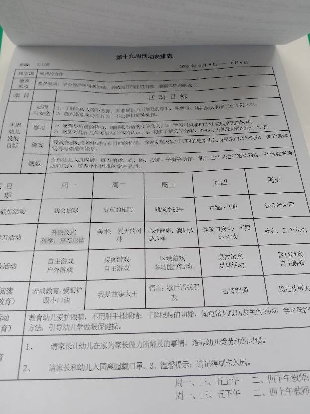 第十九周活动安排表