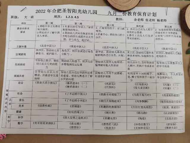 九月份月计划