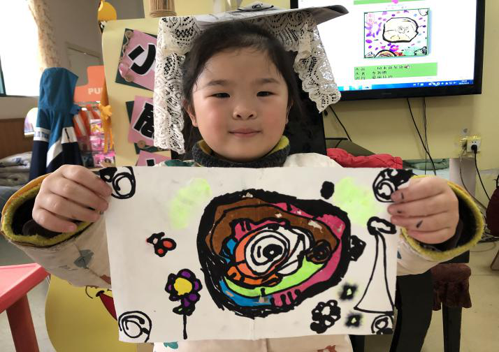 6、开展美术活动《树木的年轮》。 幼儿在宣纸上画出树木的年轮,给孩子们科普树的成长过程,知道树的年轮就是树的年龄,在树成长的初期所形成的年轮是越来越宽,随着树龄的增加,年轮会逐渐变窄,等等这样的关于年轮的知识。再以树的年轮作为载体从不同的角度去了解森林,也是换一个角度画森林,让孩子们爱护花草树木,有一一定的环保意识。幼儿对于年轮已经有了更深的了解和认知,在动手绘画年轮的时候小班幼儿还是会有一些手足无措。课堂中了解了年轮的形成以及通过对年轮的观察可以知道大树的年龄和当年气候的变化。了解了气候对植物生长的影响,好的气候环境植物才能生长旺盛、生命力强。在创作中,宝贝们通过观察,以写生的角度描绘出同心圆向外扩散,并配合点线来做点缀的画面。运用水彩笔上色,流动的水彩使木桩的纹理感更清晰画面更生动。宝贝们画出的年轮线条肯定且流畅,生动形象地概括出了年轮的外形特点,同时也表现出了前后、空间、遮挡的画面关系。通过线条与色彩相结合的方法,表现出了年轮的浓密、细密、磨损,富有美感,充满了线条与色彩结合的视觉美。 六、活动反思: 《指南》中提到幼儿的思维特点是以具体形象思维为主,应注重引导幼儿通过直接感知、亲身体验和实际操作进行学习。在本次活动中,一个不经意的发现引起了孩子们的探索兴趣,在发现木纹是不是年轮环节,把活动推向了高潮,让孩子们又投入到了新的探索活动中去,教师在这个活动中需要帮助幼儿梳理相关知识和经验,引导他们进行更深一步的探索。活动过程中,孩子们的专注和欢笑,让我们看到了自然的力量,生命的张力!陈鹤琴老先生有句话说的很好:“儿童的世界,是儿童自己去探索、去发现的,他自己所求来的知识才是真知识,他自己所发现的世界才是真世界。”本次活动中,我们以尊重幼儿主体性为前提,总结出了几种教师有效支持幼儿游戏的策略,既最大程度发挥了幼儿的主游戏的策略,既最大程度发挥了幼儿的主体性,又满足了幼儿游戏的需要。 |