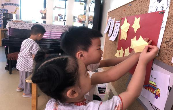 金秋送爽,国旗飘扬。在这秋意浓浓的季节里,我们迎来了祖国的七十二岁生日。我们在班级开展了“祝福祖国”的国庆活动,让幼儿了解国歌、国旗、国徽、国花。让幼儿更加深刻的了解中国的文化和历史! 中一班的小朋友们用五彩的画笔,画出心中最美的天安门,小小的画纸承载着孩子们丰富的想象,绘出了祖国灿烂美好的明天!他们认真专注,以画为笔,以爱为笺,描绘着最稚嫩一代热烈而又持久的爱国之情。 并在班级开展折纸活动《五星红旗》来祝福祖国妈妈的生日,既锻炼了幼儿的动手能力,又激发了他们的爱国热情。 通过此次活动,幼儿对于国庆节有了更深的了解,从小培养幼儿的爱国主义情感,做一个有正义感的中国娃,热爱祖国,为祖国骄傲。 |