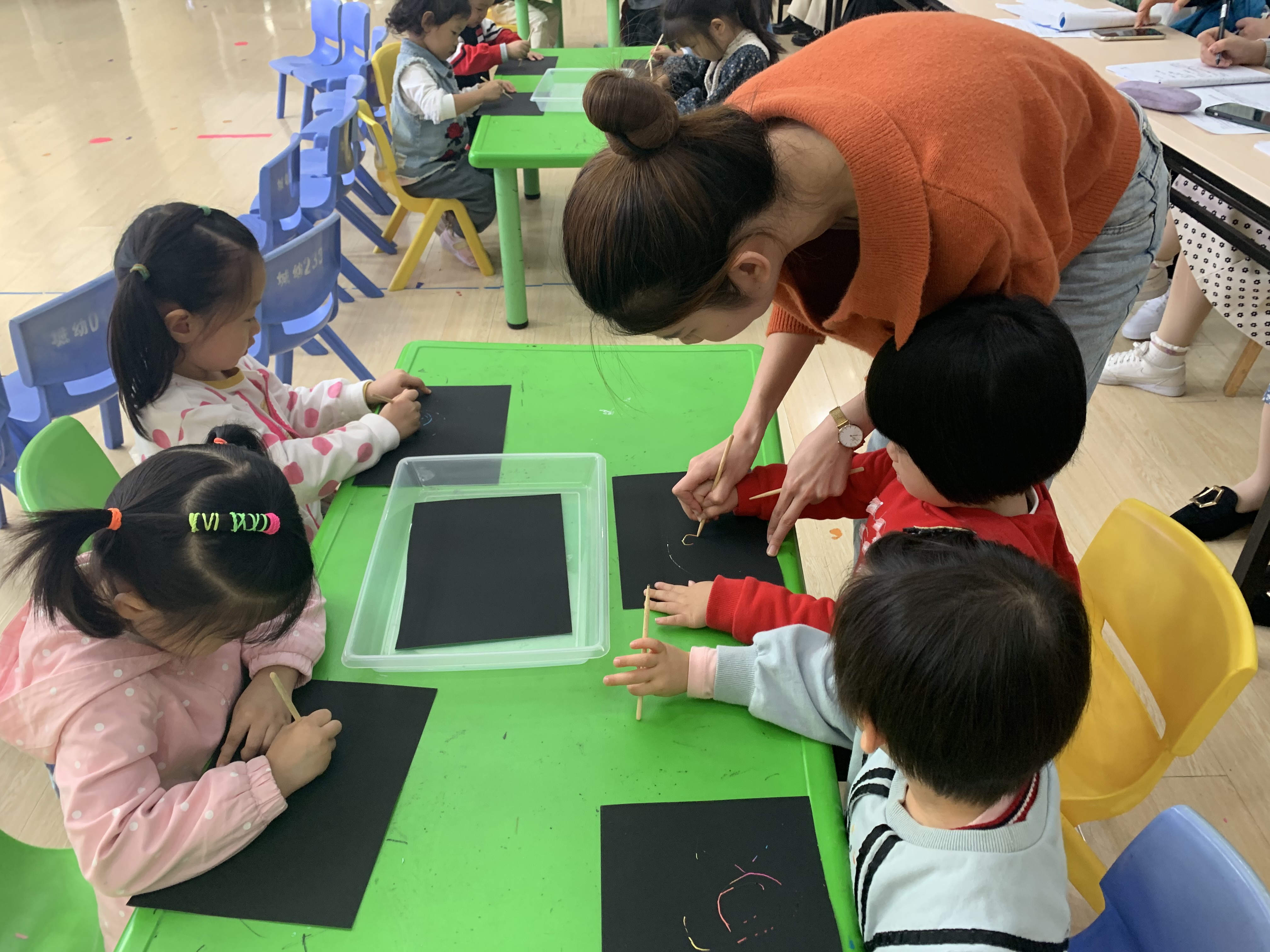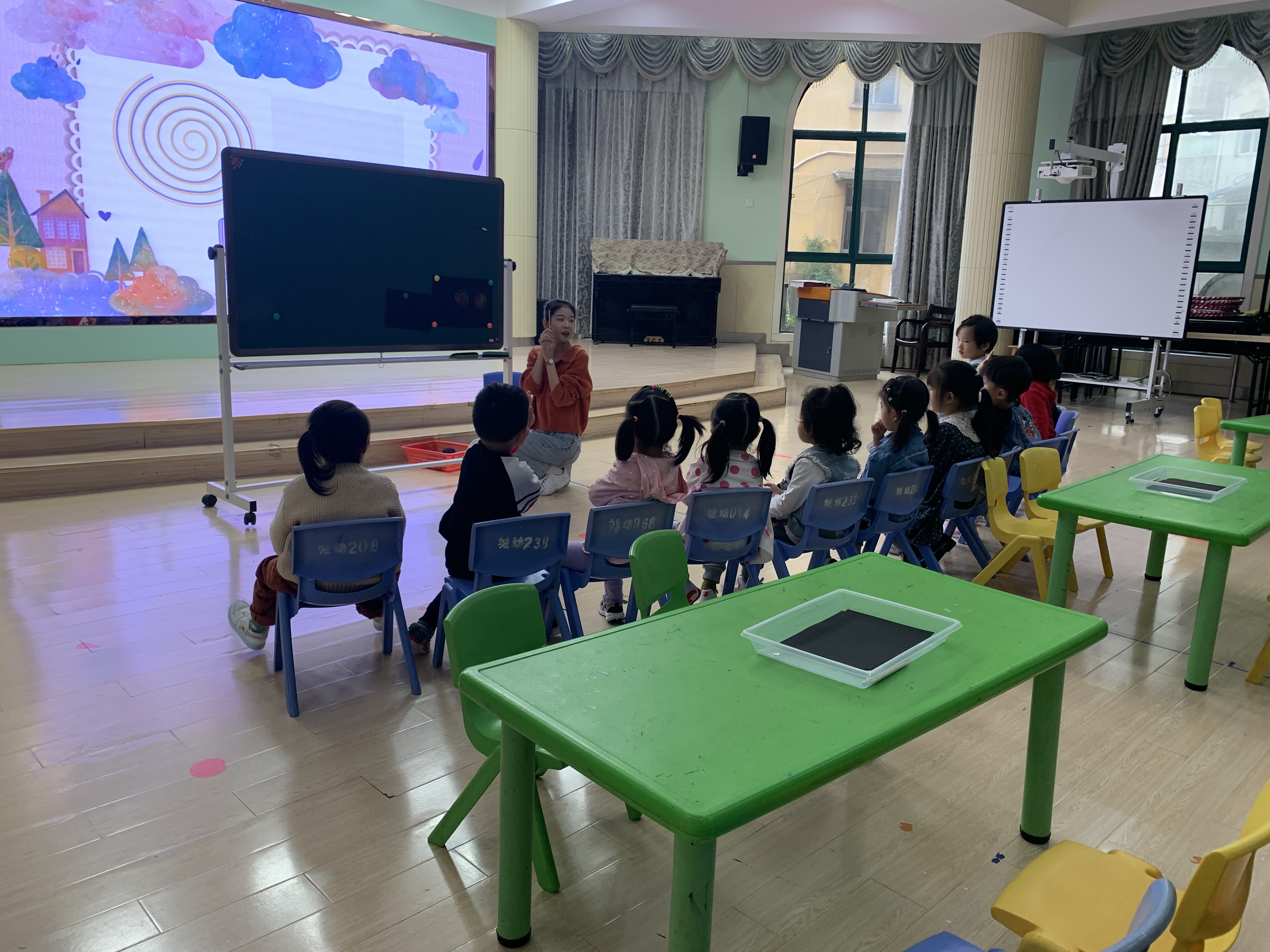 小班美术——《妈妈的毛线团》 2021——2022年度 第一学期 执教人:汪亚萍 一、活动目标: 1、能学会用刮画纸画出不同形态的毛线团。 2、尝试用螺旋线绕圈的画法画出毛线团。 3、学习由内到外一圈一圈画螺旋线,表现一团一团的毛线团。 二、活动重难点: 重点:培养幼儿的观察、操作、表达能力。 难点:让幼儿借助竹签来感知由内到外一圈一圈画螺旋线,表现毛线团。 三、活动准备: ppt、毛线团实物、刮画纸、竹签。 四、活动过程: 1、出示PPT,让幼儿观察一下毛线团的外形。 师:今天老师也带来了一个毛线团,请小朋友们观察一下。 师:最近天气突然降温的很厉害,妈妈要给我们小朋友织毛衣,可是没有毛线了,想请小朋友们帮妈妈绕毛线好吗?那毛线团怎么绕呢?(请幼儿回答) (1)教师出示PPT螺旋线的图片,让幼儿感知毛线团是由里向外逐渐增大的。 2.尝试徒手画毛线团。 (1)讨论:怎么画毛线团呢? (2)教师边念儿歌边与幼儿一起看螺旋线的视频练习画毛线团,提醒幼儿线团要绕得紧紧的,画线圈的时候也要将线圈画得紧密一些。 3.尝试用螺旋线绕圈的方法作画。 鼓励幼儿用竹签勾画出大小不同的毛线团,教师个别指导。 4.展示作品,欣赏评价。 (1 )幼儿互相欣赏作品,讨论:你喜欢哪个小朋友绕的毛线团,为什么? (2 )教师小结并表扬画面构图饱满、用色大胆的作品。 教师小结:我们的小朋友都帮助妈妈绕出非常好看的毛线团,这样妈妈就能用这样好看的毛线团来给我们小朋友织毛衣啦!这样天气变凉了,我们就不怕冷了。 活动延伸: 1.在生活区提供绕毛线的操作材料供幼儿体验绕毛线团的乐趣。 2.在户外活动中提供毛线球供幼儿滚抛投。 附儿歌: 《绕毛线》 绕绕绕,绕毛线。竹签笔,绕一团;竹签笔,绕一团。绕出彩色毛线团,小朋友们好喜欢。 活动反思: 活动反思: 在对于小班幼儿要用拟人化的口吻适合小班的孩子的情感需要,能有效吸引孩子的注意力。在相对比较枯燥的示范讲解环节,我每示范画一个毛线球都会以小班孩子喜欢的童趣话语言激发他们的兴趣,使原本活动中就不活跃的孩子一起动手。本次美术活动我选择了幼儿不太经常接触的刮画纸,通过自己的示范和视频讲解让幼儿更容易理解。 但是对于小班的幼儿我的介绍过多,教具虽然新颖,可是这次活动过程中教具准备的越充分就越难控场。小班幼儿对于刮画纸的使用不够了解,用竹签的时候小班力度不太够,在活动中“对不对”这种口语化的东西应该少一点。还有一位老师在评课时提出在美术活动中教师是否应该范画的问题,但是我觉得美术活动需要范画。因为绘画是一项操作性的能力,是需要经验积累的,而创新必须以模仿为基础。任何人、任何事物都不可能凭空想象、杜撰产生。所以,必须要帮助孩子积累关于绘画的经验,让孩子们了解、欣赏不同的作画方式,在欣赏、学习、运用的基础上触发绘画的激情,学习用自己的方式进行练习和运用。我们教师要学会融会贯通。绘画能力的培养是一个循序渐进的过程,要有系统和持续的培养意识,学会融会贯通,善于让孩子温故知新,不断积累,从而达到灵活自如地表达的目的。