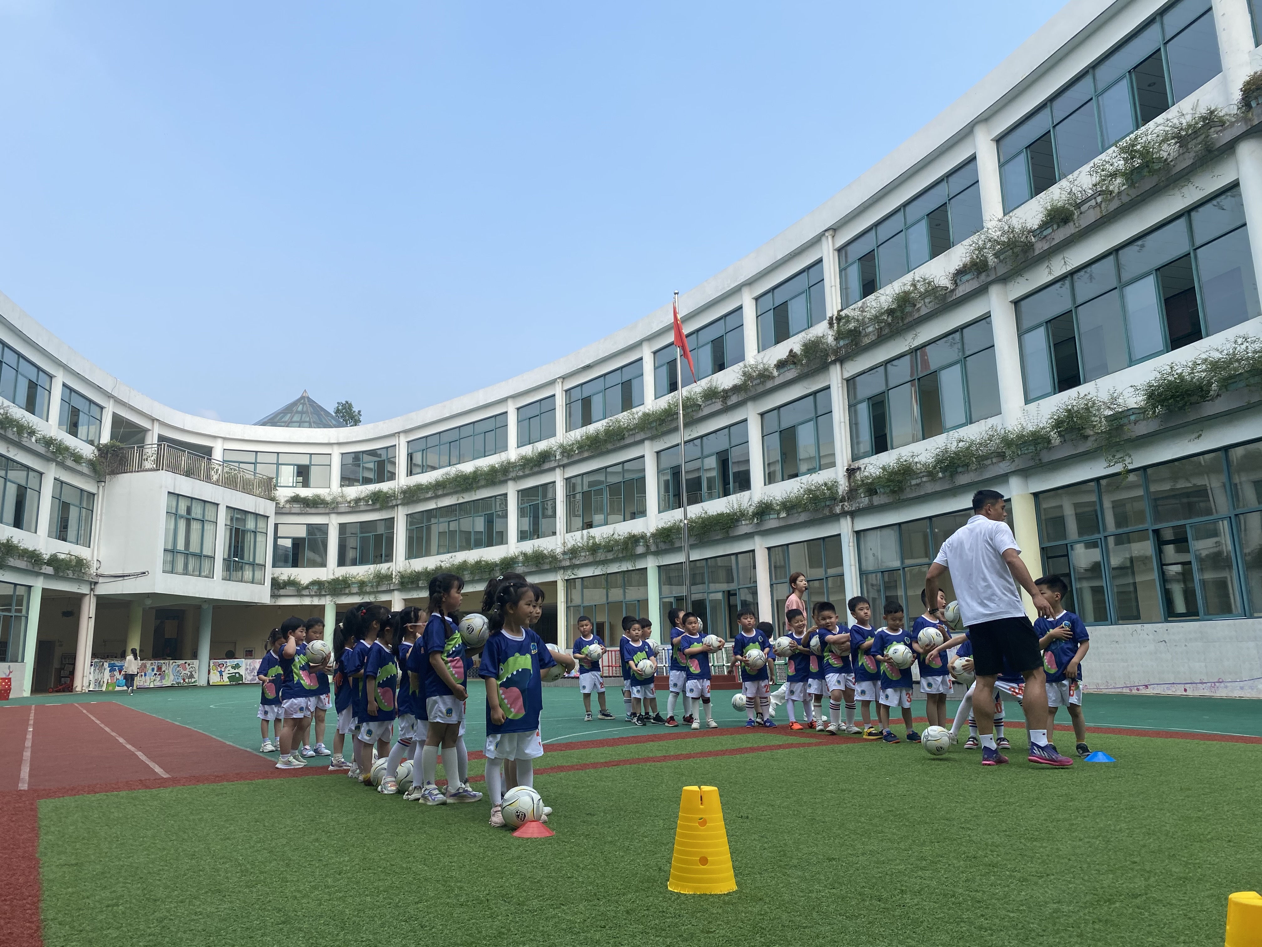 一个足球场,一群小伙伴,还有一位帅帅的爸爸。就这样,我们的足球活动开始了。
