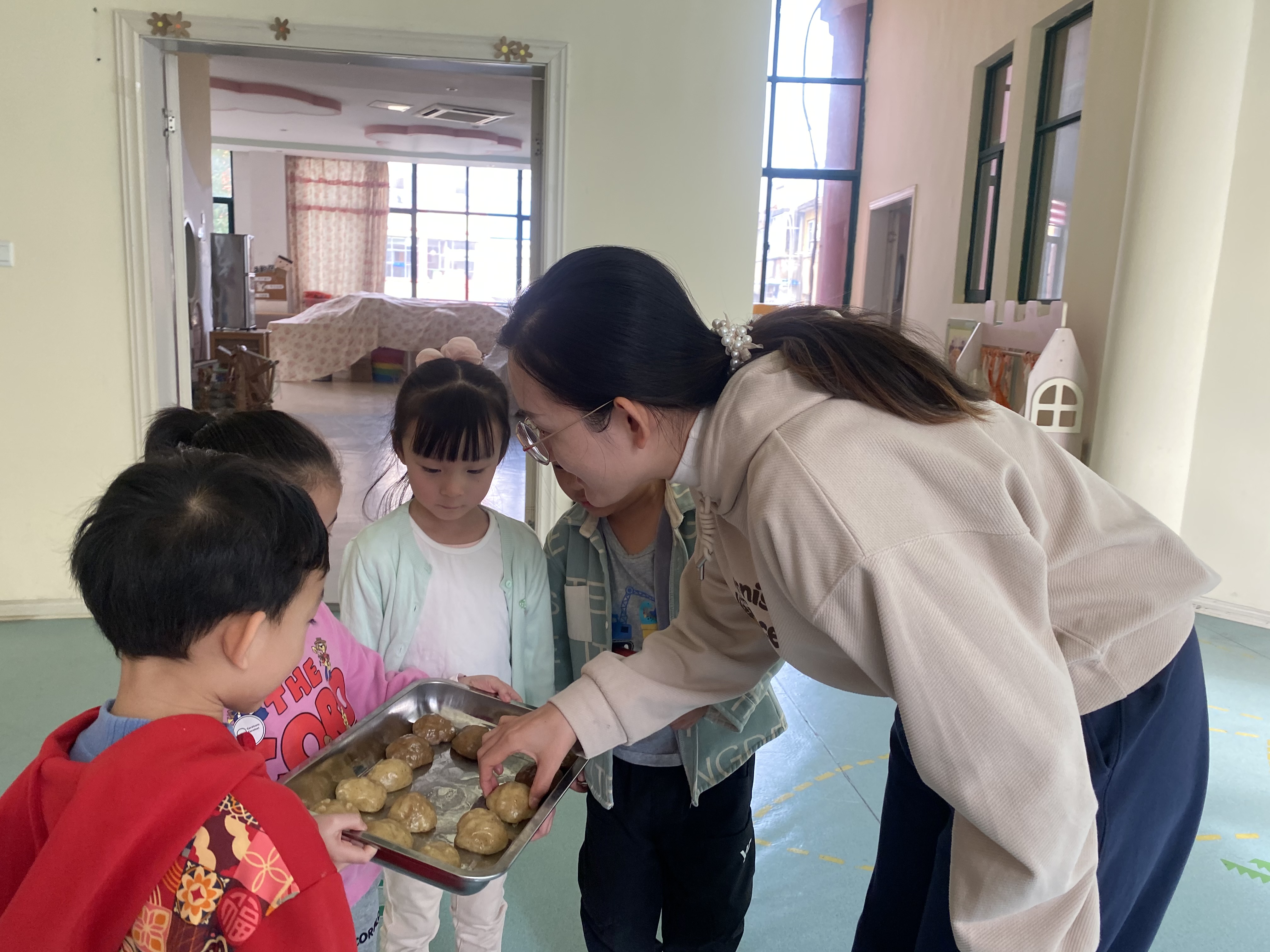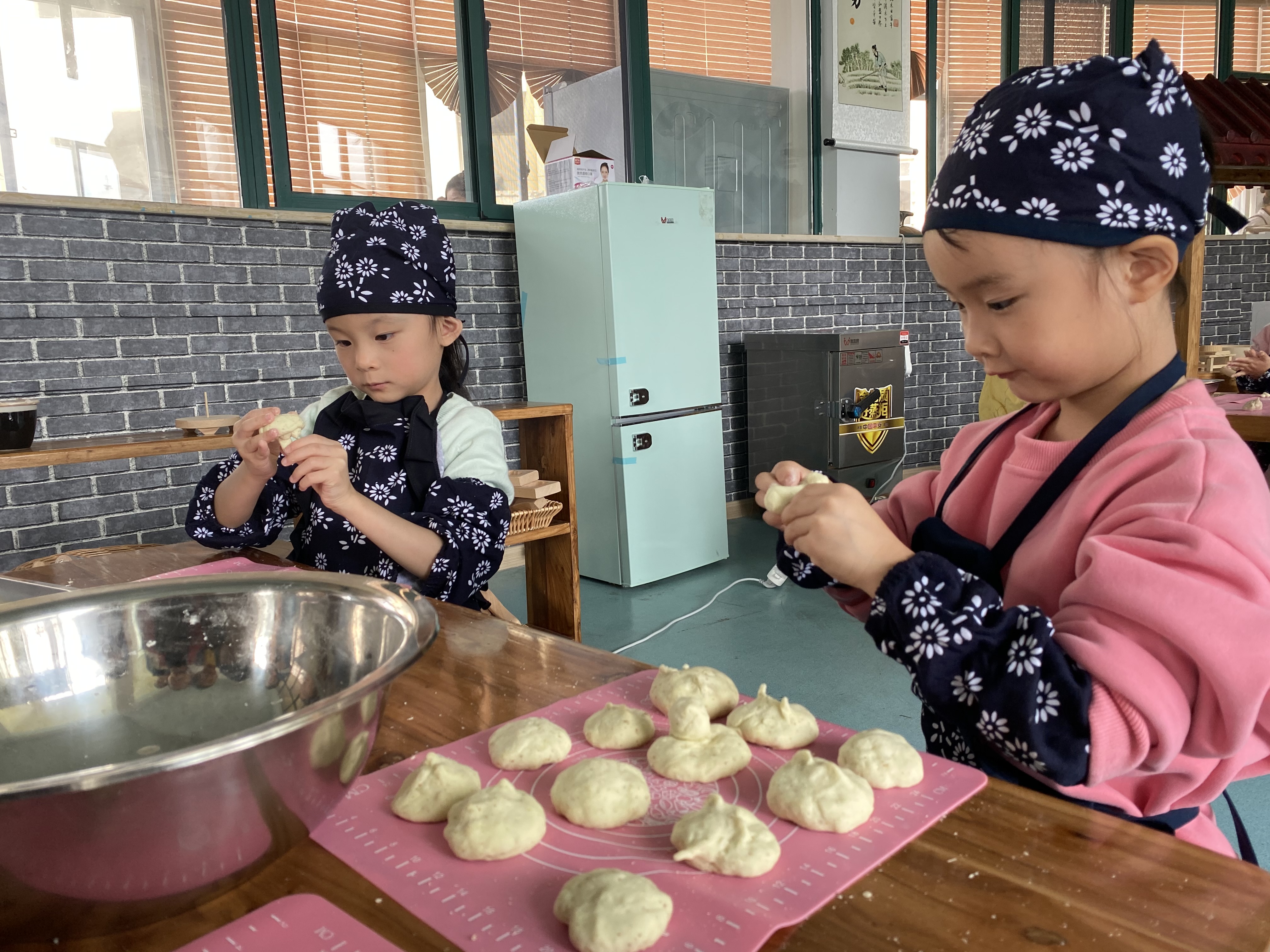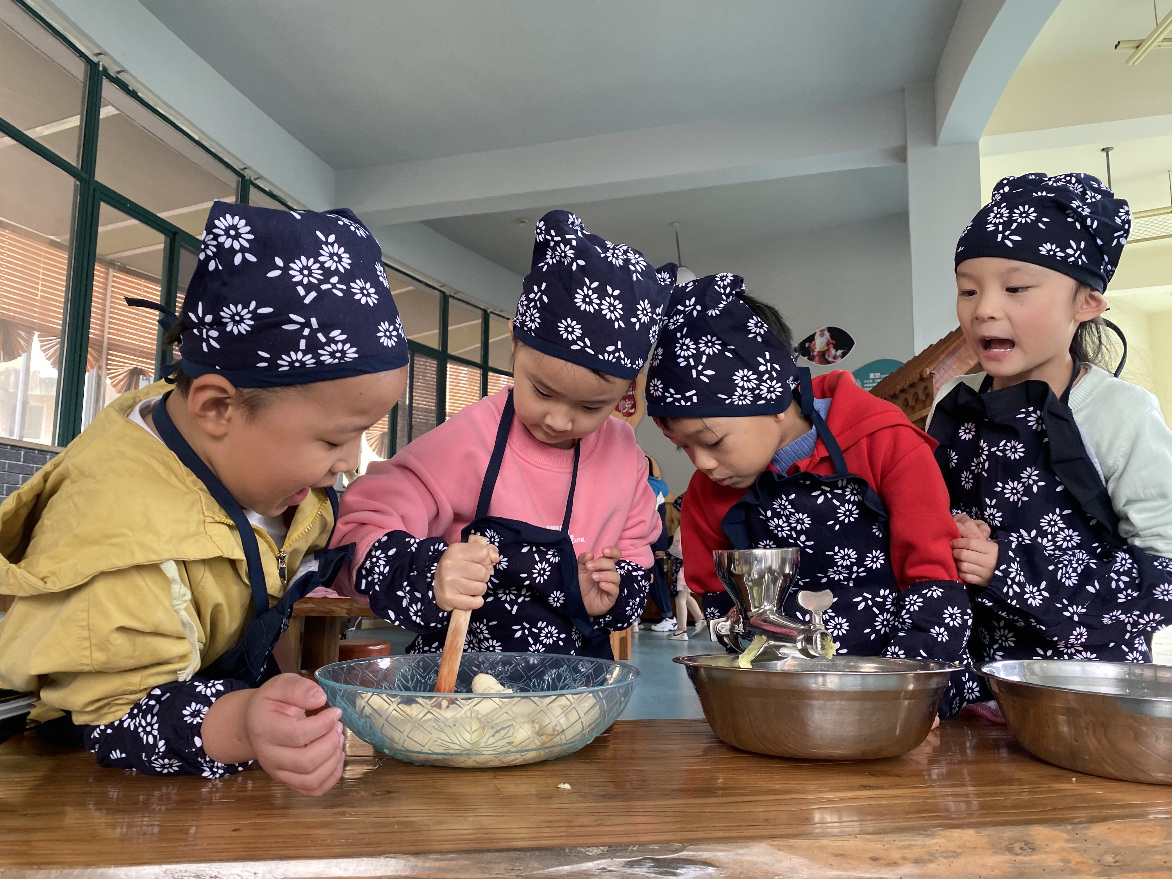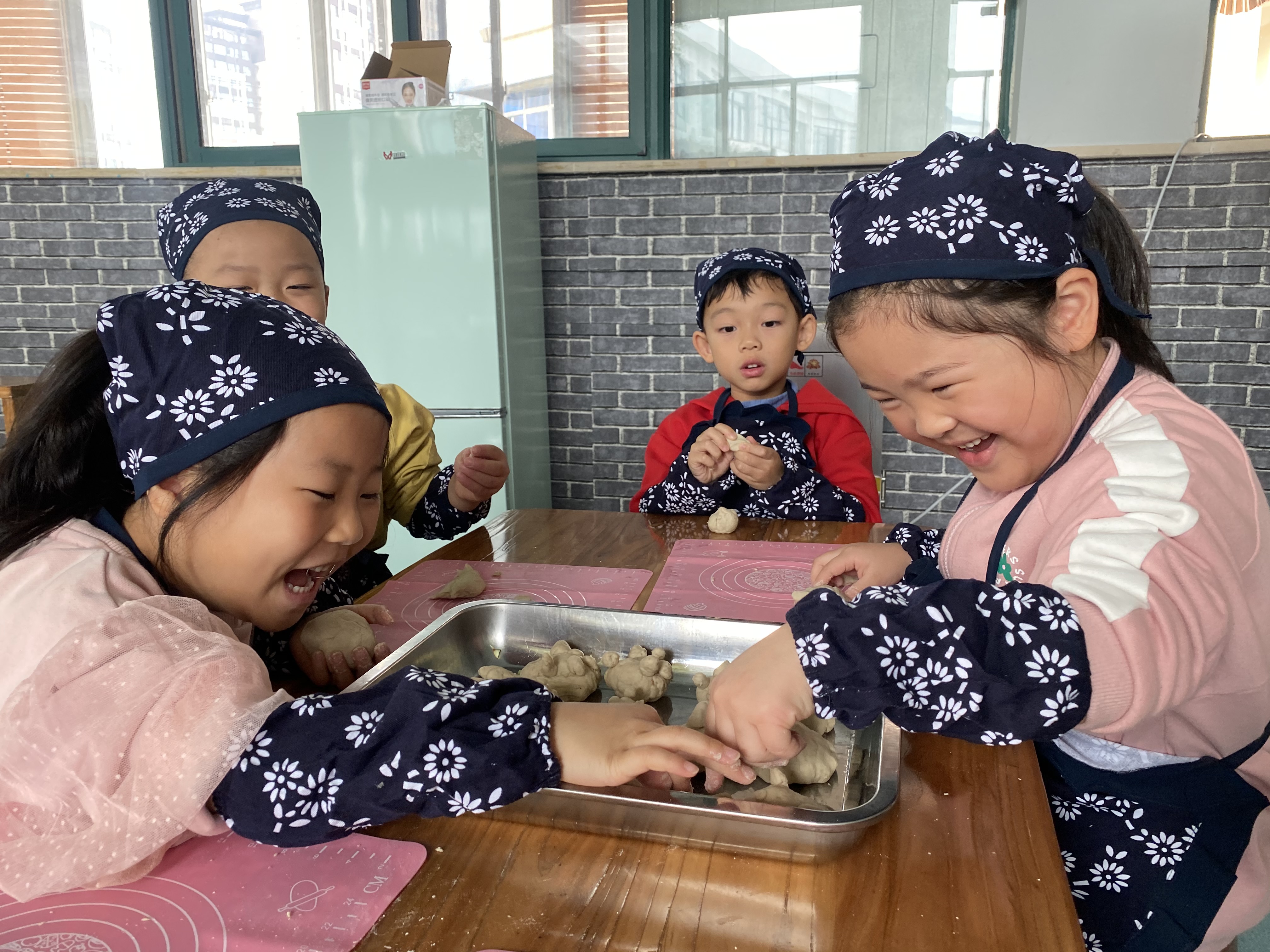 瞧一个个认真操作的模样真可爱极了!从他们专注的眼神里读出对生活的热爱,指尖在搓、揉团的千变万化中,一个个蕴含幸福味道的窝窝头瞬间在手中绽放。