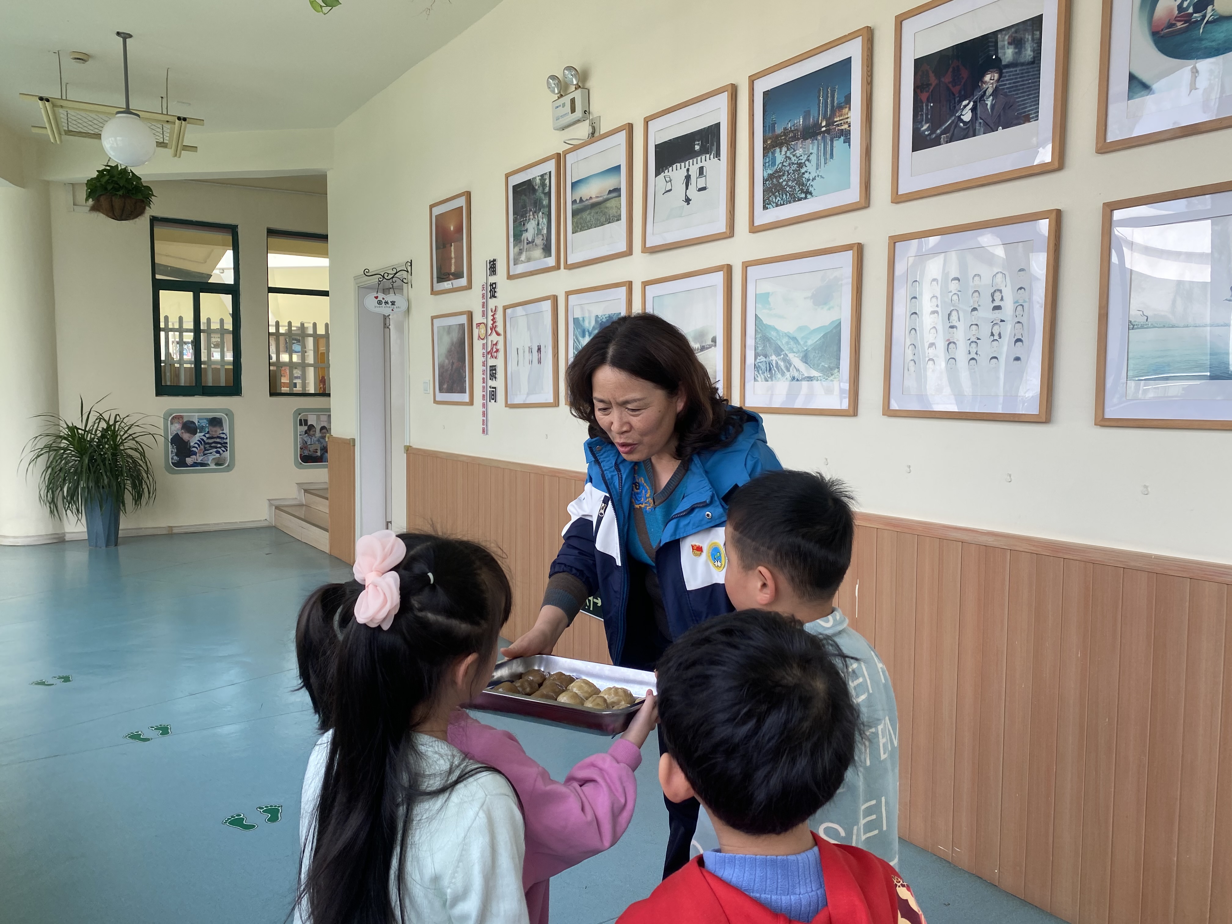 不一会儿,美味的窝窝头制作完成,把它放入蒸箱蒸一蒸,哇,美味的窝窝头出锅啦!赶紧送给园长老师们尝一尝,感谢她们教会我们制作窝窝头,体验美食制作带来的喜悦已经生活乐趣。