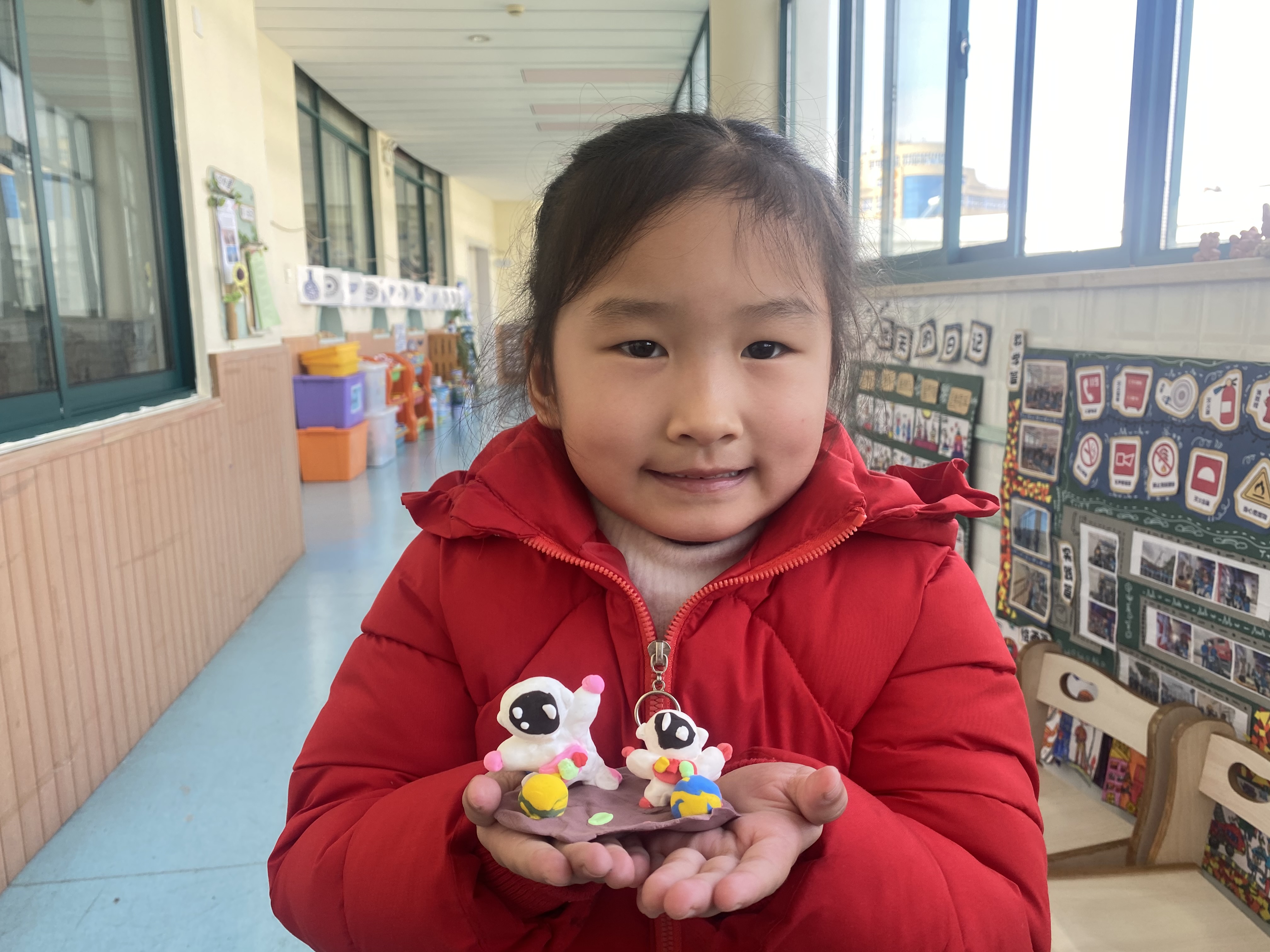 2022年6月,神州十四号飞船顺利进入太空,航天员在太空入住6个月。就在即将结束工作的日子里,11月30日神舟十五号航天员乘组在载人飞船与空间站组合体成功实现自主快速交会对接后,并与神舟十四号航天员乘组“胜利会师”。神舟十四号和神舟十五号两个乘组都将在轨飞行6个月,将首次实现在轨乘组轮换,实现不间断有人驻留。 这是一件令人每一位中国人骄傲自豪的事情,为了帮助幼儿进一步了解中国航天科技,激发幼儿科学探索兴趣,培养幼儿科技兴国,航空报国的爱国精神,我们又一次开展“小小宇航员”活动,大家一起唱,一起说那些有关宇航员的故事,最后的粘土“宇航员”让我们看到一个个可敬又可爱,勇于创新甘于奉献的航天人在幼小的心灵埋下爱国、强国的种子和美丽的梦想。