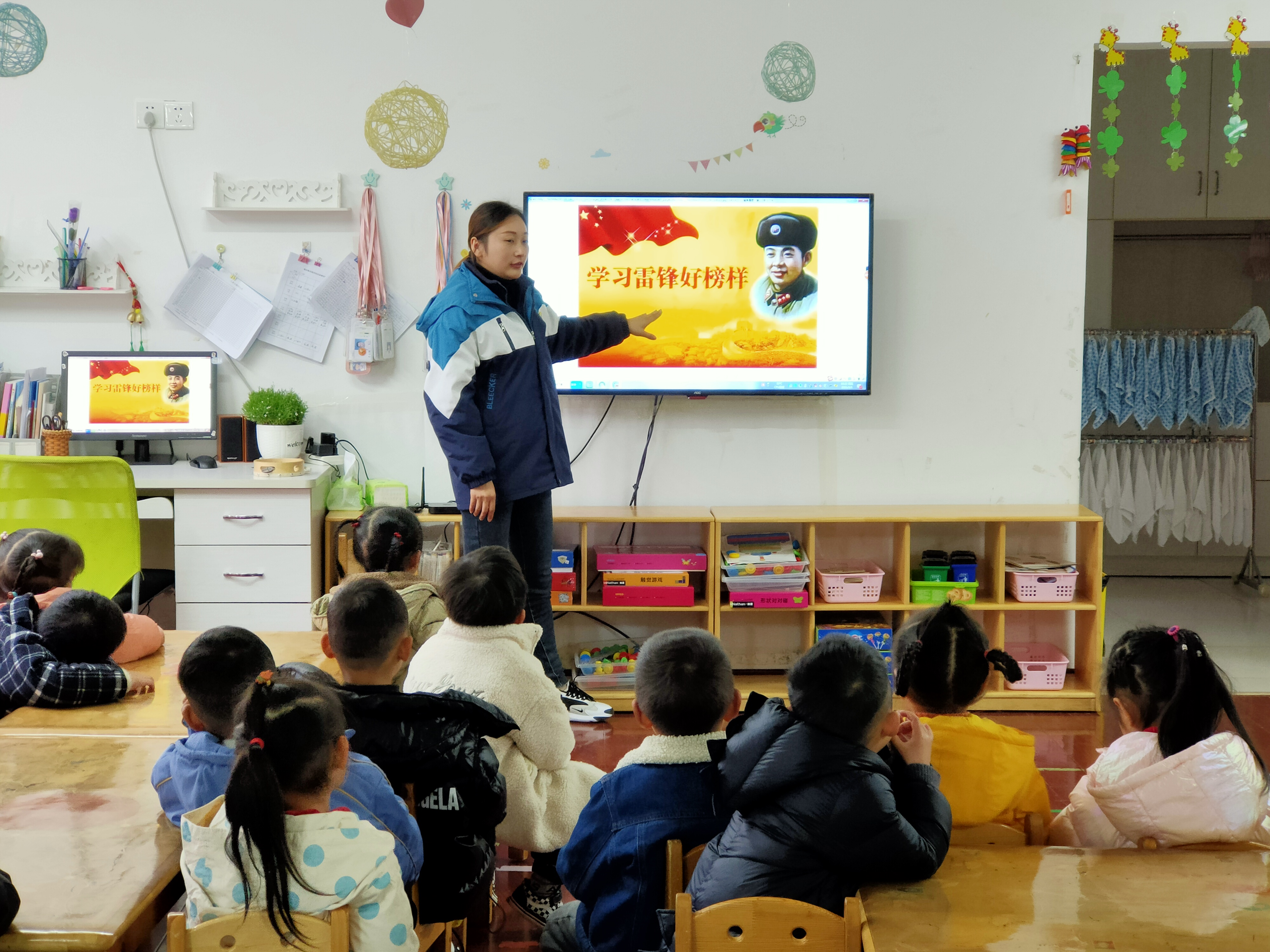 活动中,我通过播放图片、讲述雷锋叔叔事迹等形式让幼儿认识雷锋,并感受雷锋叔叔乐于助人、艰苦朴素的优良品质。引导孩子从身边的小事情做起,做自己力所能及的好事。